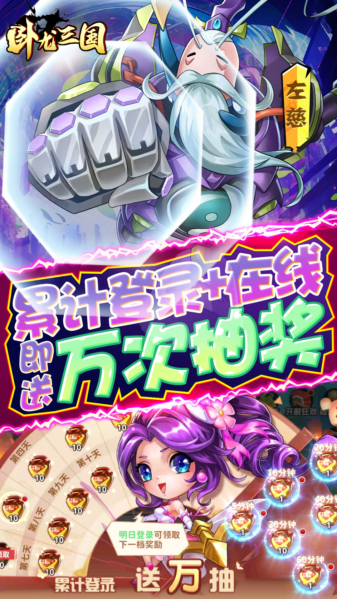 1、0.1折正版三国IP授权卡牌手游2、累计登录+在线即送万次抽奖3、通关指定关卡送红色武将4、完成任务即可赠送红4星武将、红4星神魔武将、金4星武将、金4星神魔武将5、挂机收益,养老护肝,每天轻松上线,奖励拿到手软!