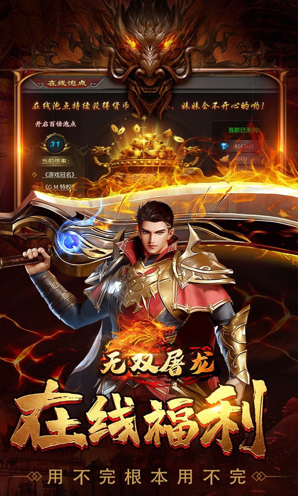 1.上线百万钻石、范围切割、全屏捡物!散人也能爽玩!2.千件专属、怪物全爆、满地红包、零氪畅玩!3.在线泡点持续得货币,用不完根本用不完!4.每日登录福利礼包,天天可领,不花一米!