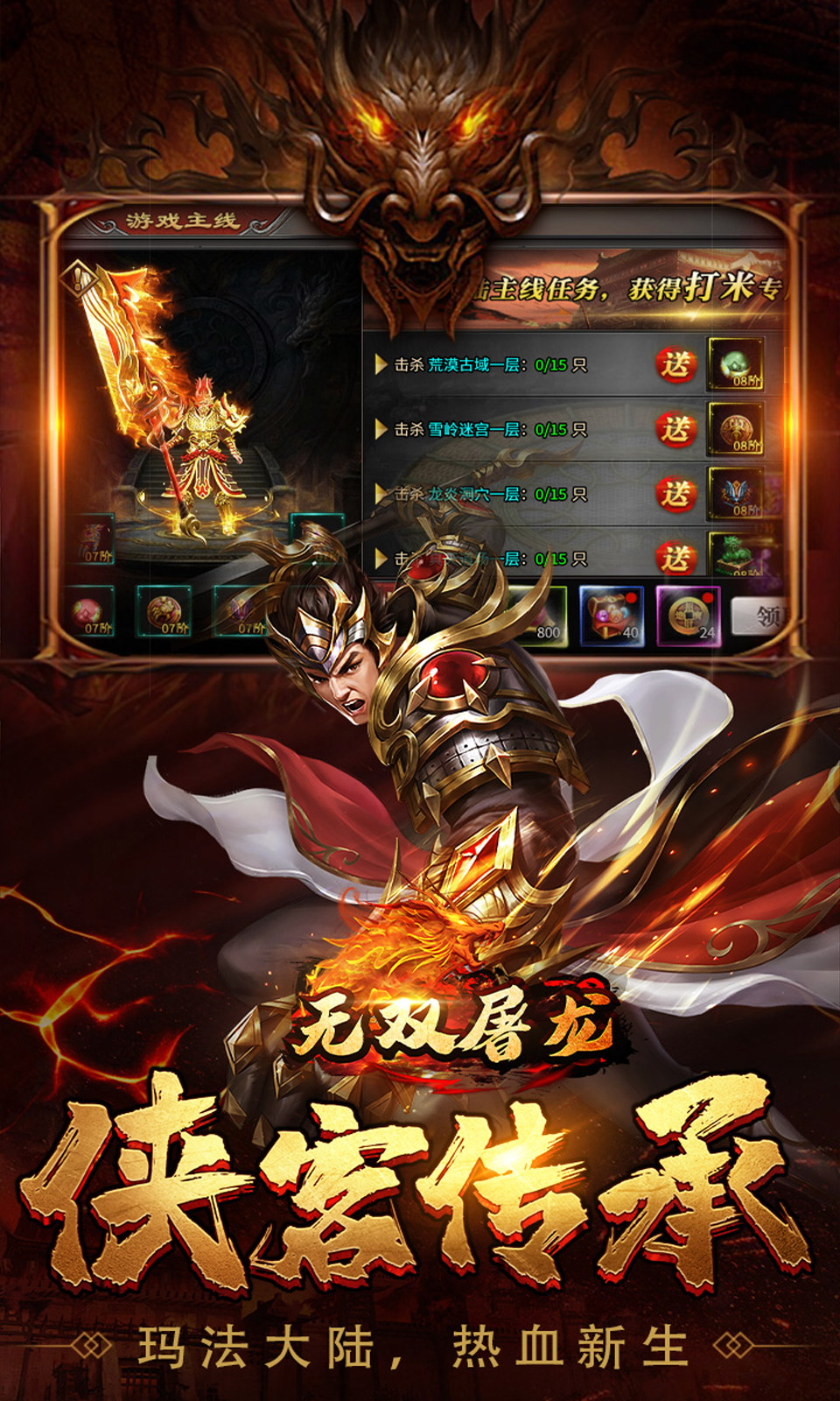 守护广大玩家心中那份情怀!一切靠打,不氪金更耐玩!各种属性完美匹配,PK超爽版!上线百万钻石、范围切割、全屏捡物!侠客传承,风云再起!玛法大陆,热血新生!