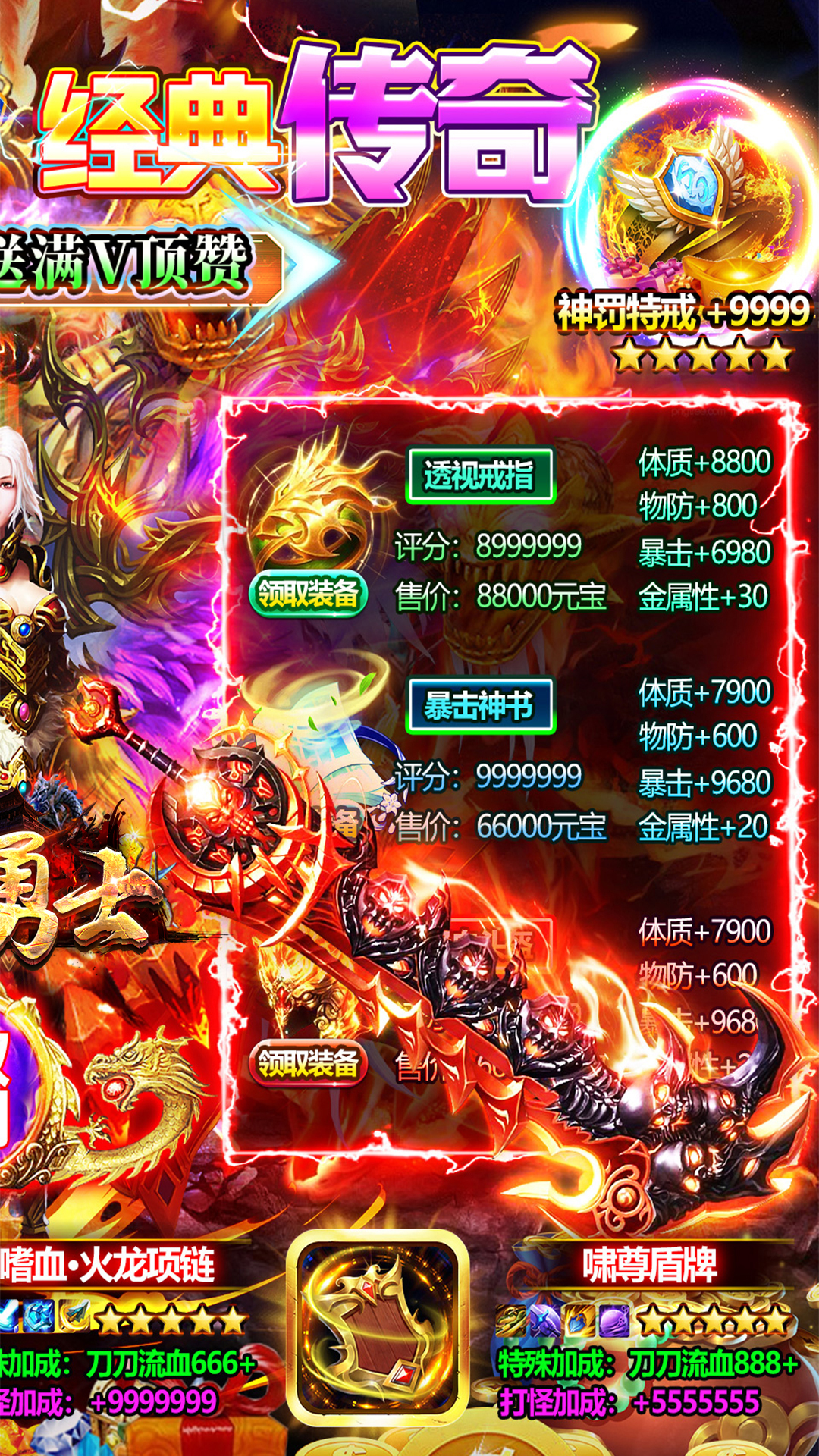 全新三职业超变传奇来袭,全场充值全部0.1折,不限量不压价,只做真正得0.1折福利游戏;全部VIP等级完成指定任务即可免费获得,更有各种神器免费完成任务免费领取,还送黄金赞助,领绝版称号;热血开砍刀刀切割,超爽快打金体验,跨服对战,激情皇城统统等你来参与!