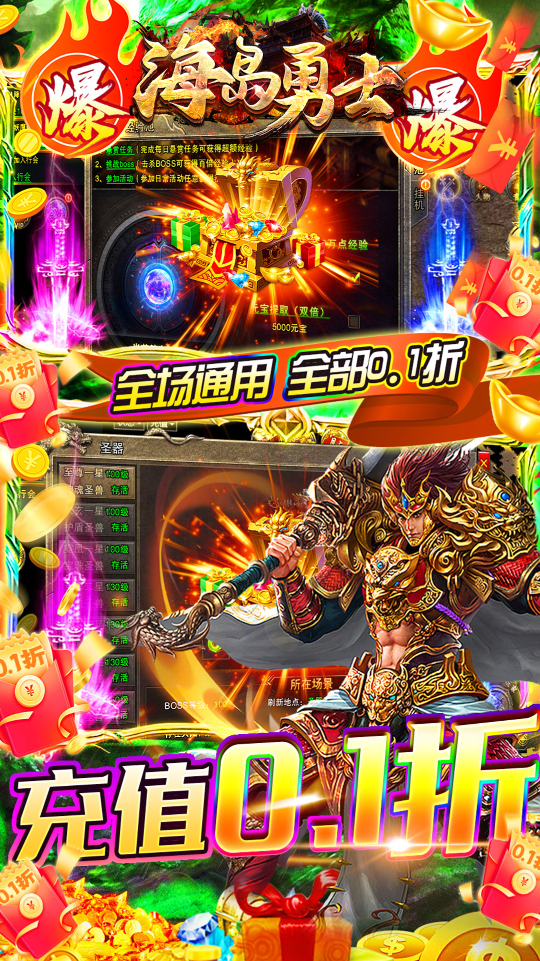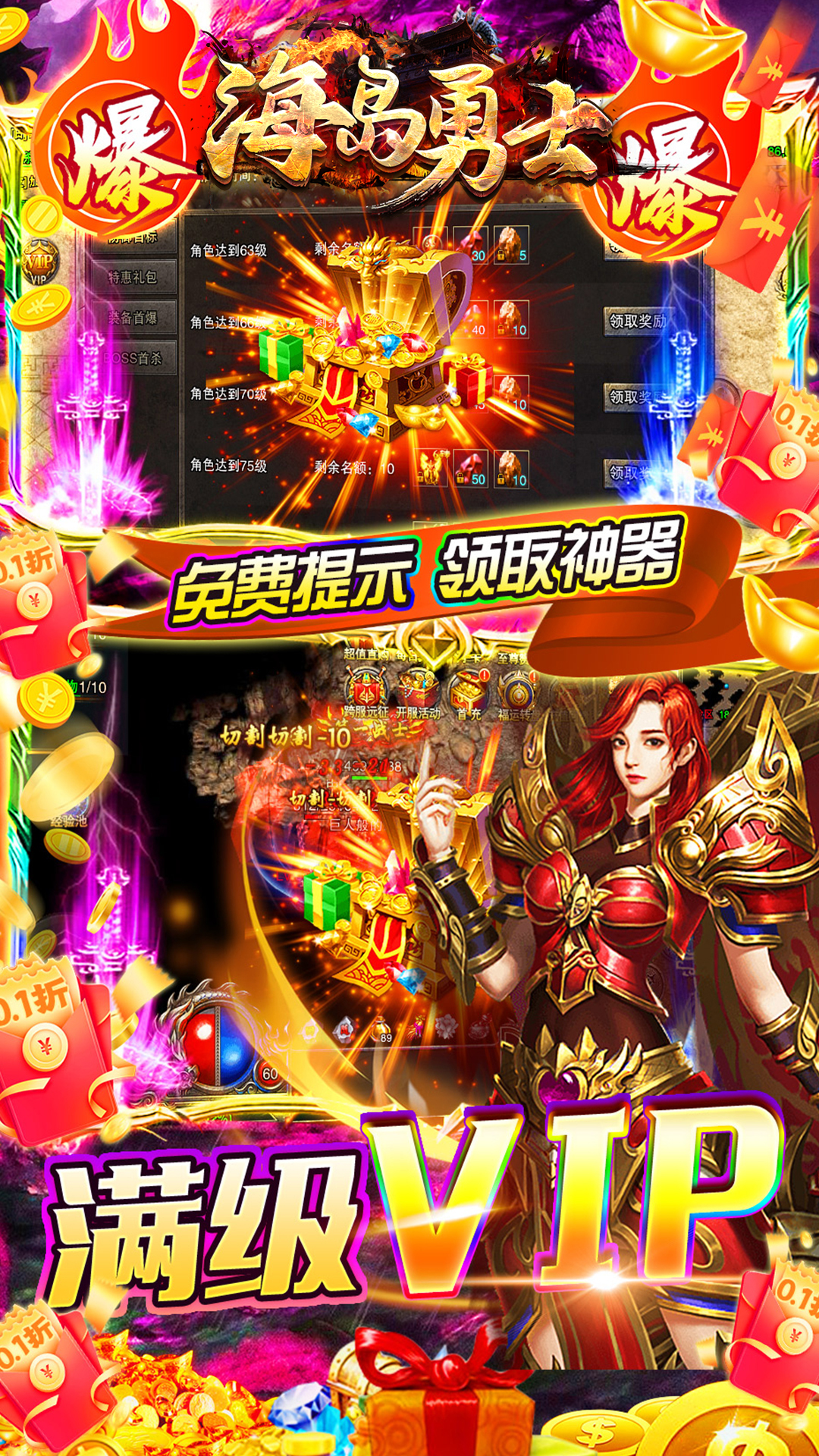 1.游戏永久充值0.1折福利,不限量不膨胀!2.上线送顶赞,礼包码:mfzzlb领取激活3.完成任务免费激活所有VIP!4.任意首充领三天奖励,3转衣服武器,让你赢在起跑线!5.热血不止,战斗不息,激情跨服,热血皇城!