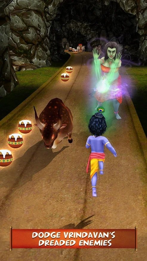 现在跟随小克里希纳,当他在温达文追逐普塔纳并将她的邪恶行为绳之以法。享受Vrindavan提供的全新游戏体验和挑战,并以自己的方式克服障碍。避免肆虐公牛,愤怒的大象,热熔岩流等等。在奔跑中获取令牌以解锁具有特定能力的角色。在这个具有挑战性的3D游戏中,收集尽可能多的硬币并在朋友中获得最高分。