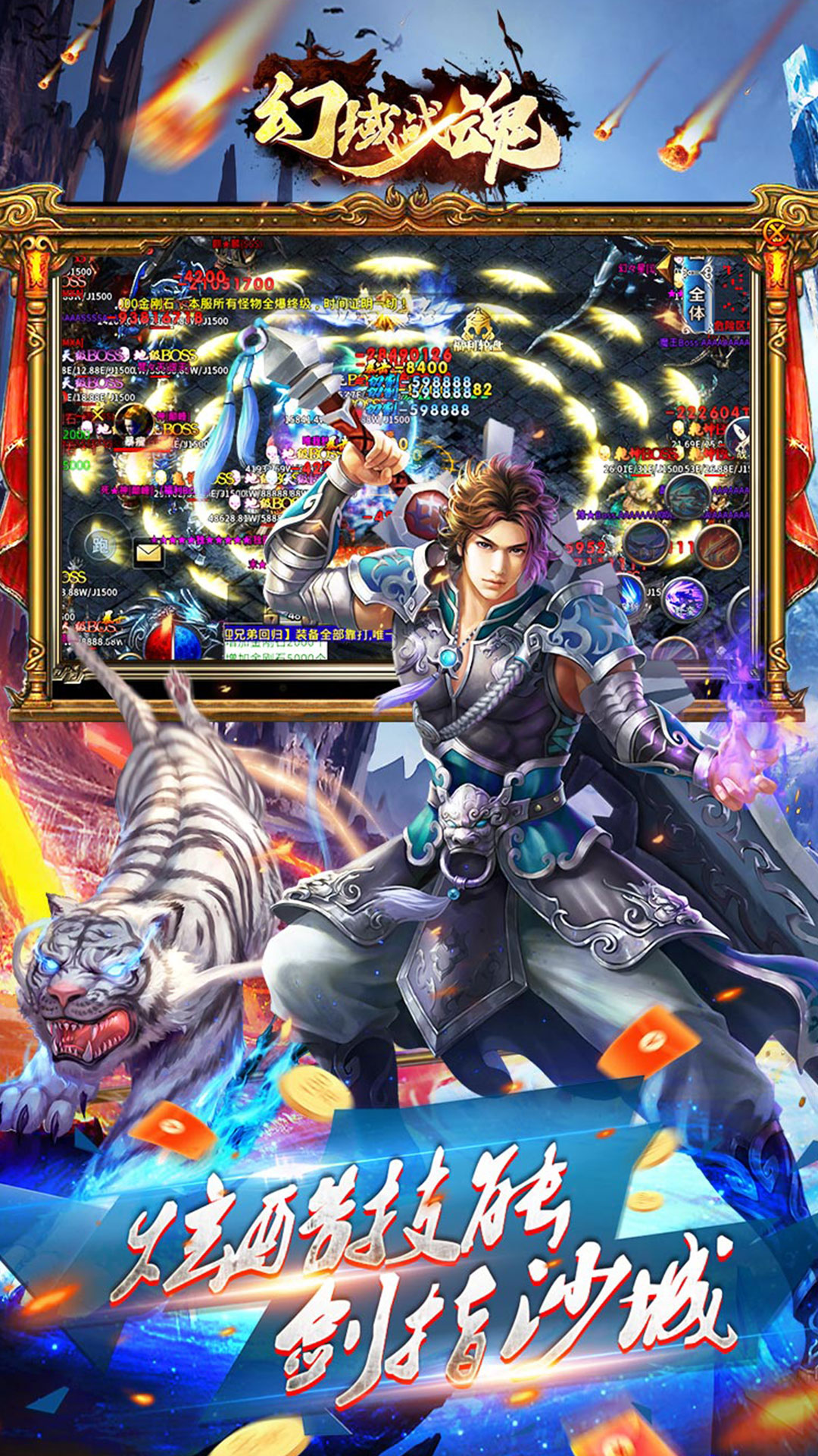 《幻域战魂(攻速狂爆迷失)》是一款无限刀迷失神器传奇,上线送好礼,免费自动回收,大量材料。做任务获取vip,顶赞称号奖励通通免费领取!在线领奖,登录领材料,完成任务领领领,领到手软,轻轻松松起步!游戏满攻速,打怪刀刀切割,爆率全面提升,小怪也能爆终极,一身豪装不是梦!福利多活动多,地图多大陆直传,良心好服等你下载,热血战沙城!