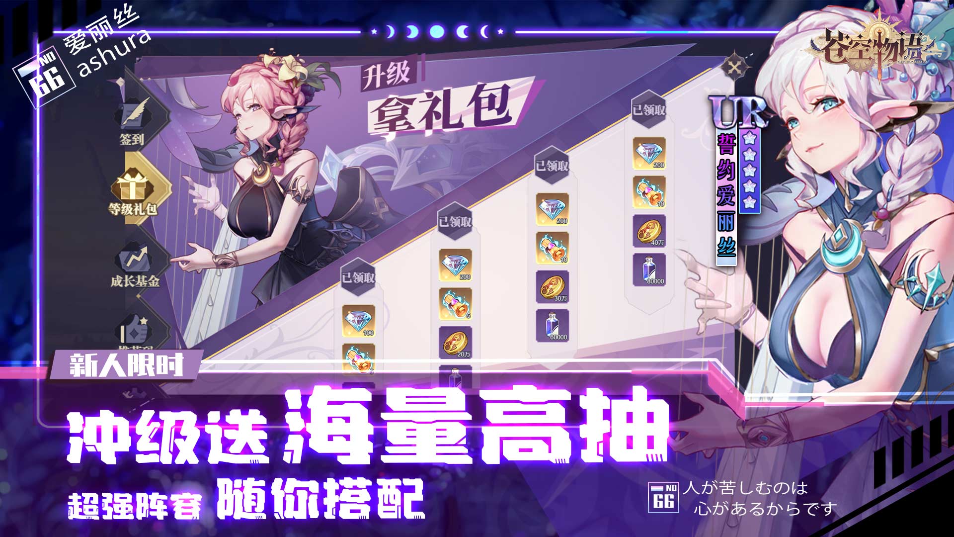1、7天庆典狂送高抽和神将,神族英雄唾手可得!2、冲级送海量高抽和钻石,十连停不下来!3、首充即送超强SSR英雄,好看又能打!4、高抽积分换英雄,人人都能拿神魔英雄!5、极品装备爬塔就送,战力提升永不愁!6、精美人物立绘,炫酷技能特效,五大英雄阵营,多样化阵容搭配,快来加入我们,打造属于自己的英雄队伍,开启属于你的异界之旅吧!