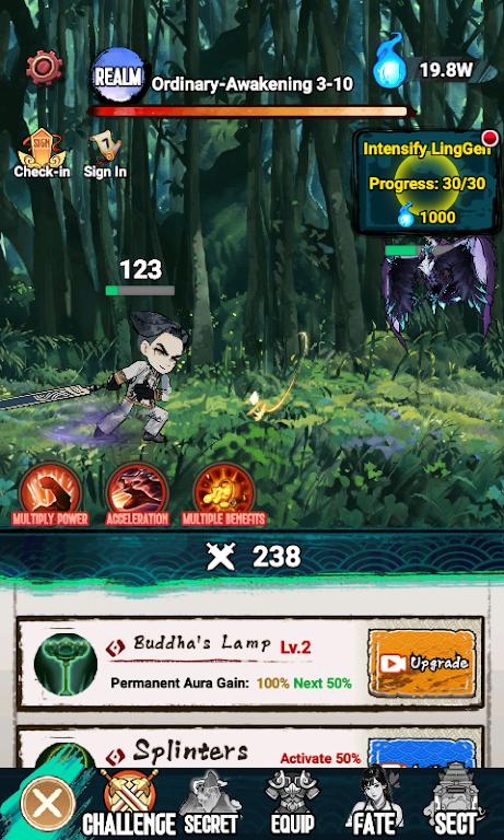 一款休闲放置游戏。击败敌人获得精神力,消耗精神力增强属性。