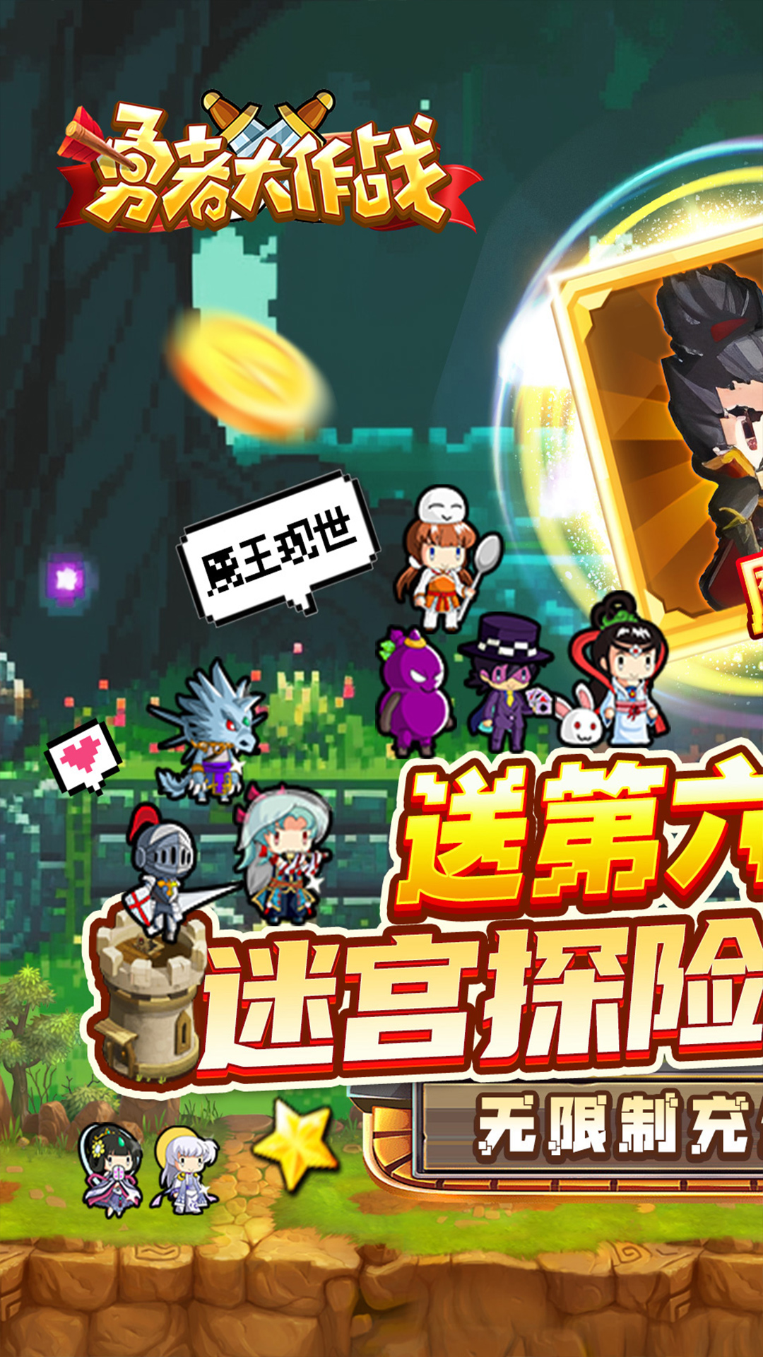 无限勇者魔性手游《勇者大作战》回归了!!!颠覆你的世界观只需0.1秒。多元玩法组团开战,躺着也能嗖嗖升战力!更有让人欲罢不能的弹幕吐槽,23333!