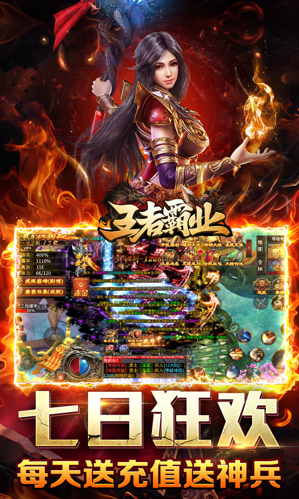 《王者霸业(亿万霸服切割)》是一款全新切割传奇手游,结合了神器、切割、跨服等玩法,剧情丰富有搞头,技能特效有讲究,战斗冒险纵横驰骋,热血的战斗为你带来不一样的体验!上线就送等级大礼包、古剑干将、刀刀带毒。奇遇系统,奇遇不断,奖励不断,快快加入吧与兄弟们征战吧!真正的热血传奇邀你来战!