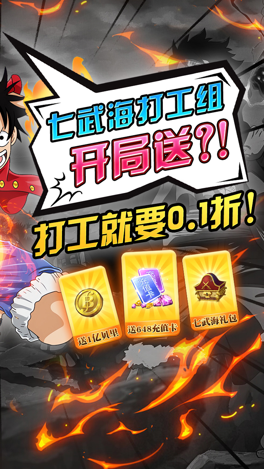 1、充值比例1:10,首充双倍钻石,全部充值永久0.1折2、上线送VIP10、648元充值卡*1、贝里*1亿3、送七武海礼包,开局送七武海打工七人组4、新服登陆领豪礼,火拳艾斯、新世界索隆、四皇红发免费送5、佛系挂机,离线也能升级,挂机收益永不停歇6、伙伴收集重温经典,一起勇闯新世界7、首充只要6分钱,助力英雄直升100级,还能领7天奖励
