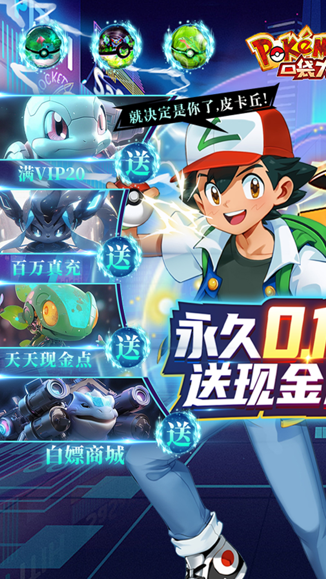 1、创角即送VIP20、UR精灵任选礼盒*1、彩钻*8888、钻石*888w、金币*888w2、天天0.1折,百倍充值福利,新版福利升级,平民爽玩3、天天送现金点,线上礼包免费激活4、在线免费领百万真充,可激活游戏内累充活动5、GM专属白嫖商城,海量资源每天领不停