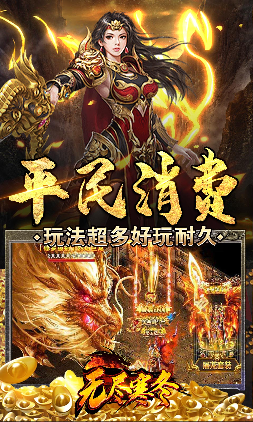 《无尽寒冬(0.1折神魔忍者)》是一款全新0.1折充值传奇手游。结合了宠物、羽翼、时装等玩法,全新专属玩法。炫丽的技能秀翻全场,精准的打击斗智斗勇。在玩法方面,以升级、爆装、抢沙等传奇核心玩法为主,忍者大陆、战争学院等奇异大陆等你,各类专属装备炫酷无双。上线就送海量材料、特殊材料。史诗巨作,经典再现,小资玩家专属好服,全程挂机也能当大佬。告别墨守成规、打破传统,专注于高质量体验!放逐之刃星蚀锐雯加入战场,快快加入吧与兄弟们征战吧!真正的热血传奇邀你来战!