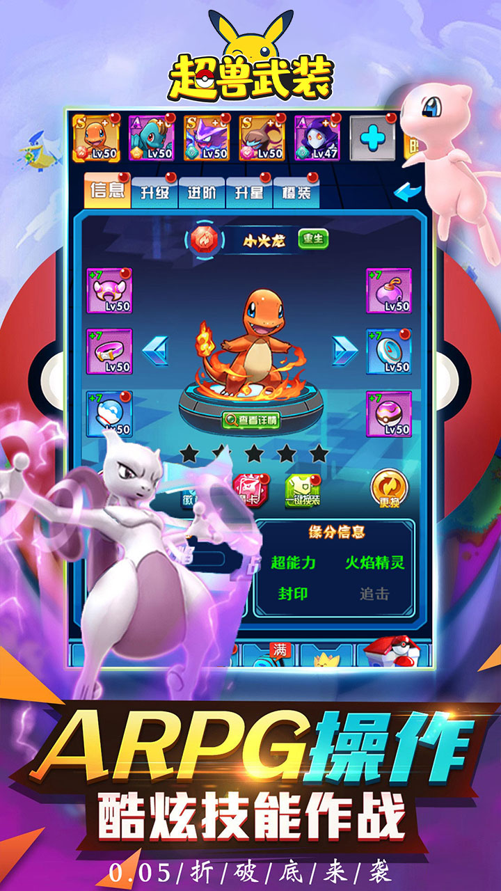 《超兽武装(0.05折送SS精灵)》是一款精灵放置回合手游。小精灵形象可爱有趣,游戏玩法经典回味。百种精灵任你捕捉,珍稀精灵抓到手软!强力神兽无限成长,梦幻超梦超级进化!每日登陆送超多钻石福利,多日登陆领取珍稀精灵鲤鱼王,七天登陆领取神兽梦幻。还有世界boss,联盟大赛,神秘道馆,公会boss,精灵中心,秘宝精灵,镜像空间,古老遗迹等超多玩法等你来体验。经典小精灵,带你回味童年!