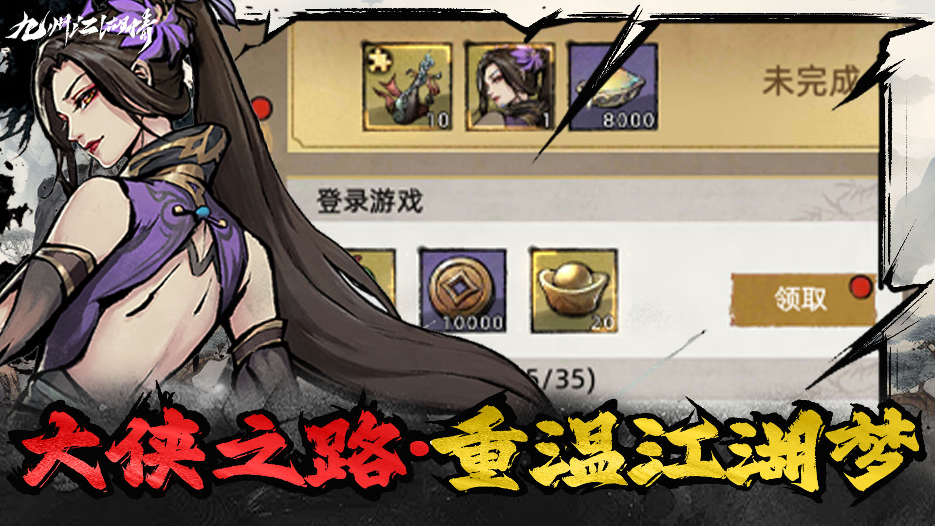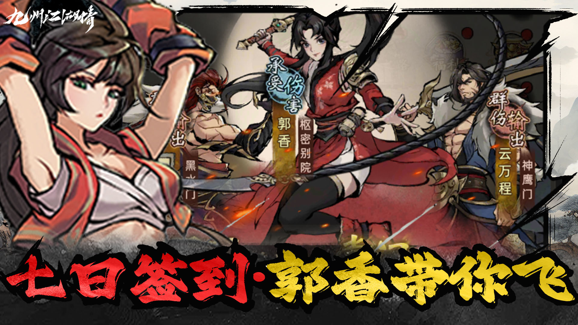 《九州江湖情》是一款武侠风放置卡牌游戏。南宋末年,宋蒙连年大战之下,江湖势力强势崛起,纷纷承担起属于自己的历史使命。你出身边陲小门派,师傅出走,师弟也不怎么靠谱,如何在这乱世闯出一片天,谱写一曲义薄云天的大侠传奇,或扮演逆势崛起的魔教枭雄?在《九州江湖情》中,你将亲手通过一个个选择,影响你的一步步江湖路,最终打造一个只属于你的武林!
