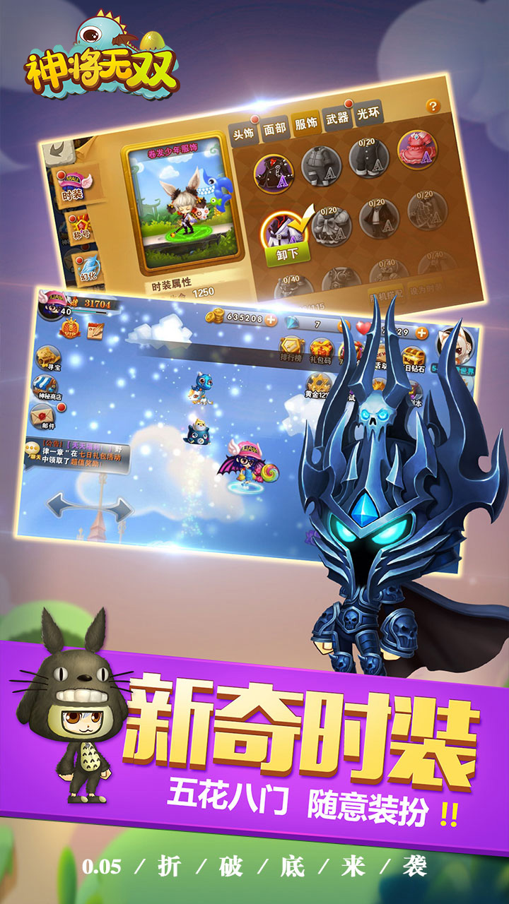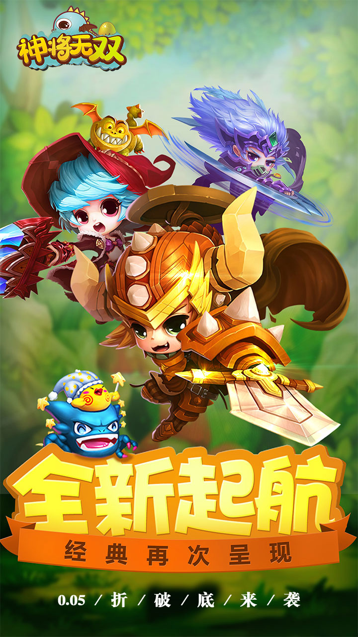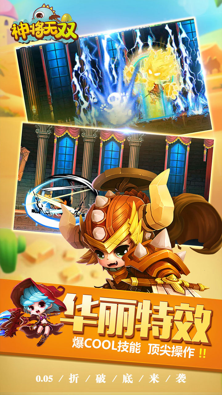 《神将无双(0.05折无限资源)》是一款Q萌横版过关动作手游。游戏以2D横向卷轴方式呈现神秘的冒险世界。游戏中角色可以穿戴多样化的装备、使用自由组合的技能进行战斗历险,并可自由的跳跃、攀爬甚至飞翔。上百精灵宠物与玩家并肩作战,超过50种时装、30种翅膀可供个性装扮。在这里每一个玩家都是独一无二的主角。