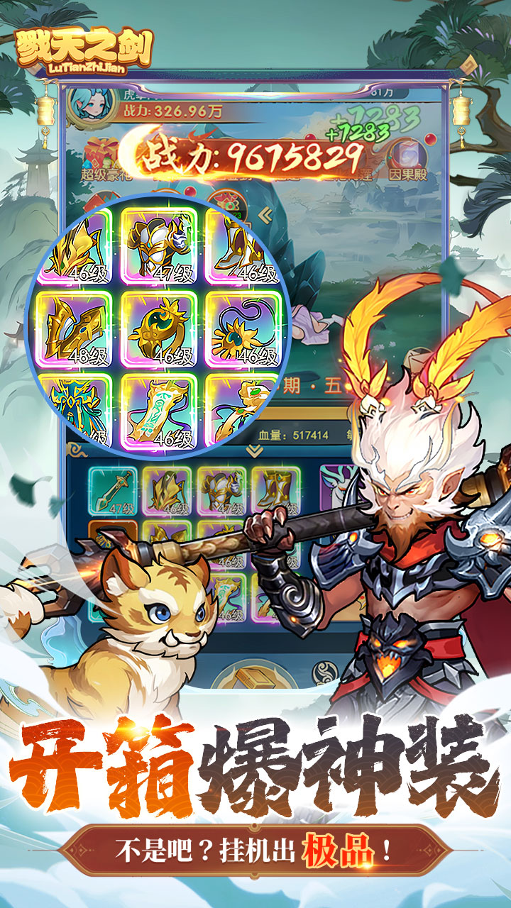 威风凌凌的侠客、来自深海的龙女、山里崩出的小猴子,一块神奇的石头,砸它,砸它,各种至宝装备从石头掉落,携带各种奇珍异兽相伴而行,飞升渡劫!