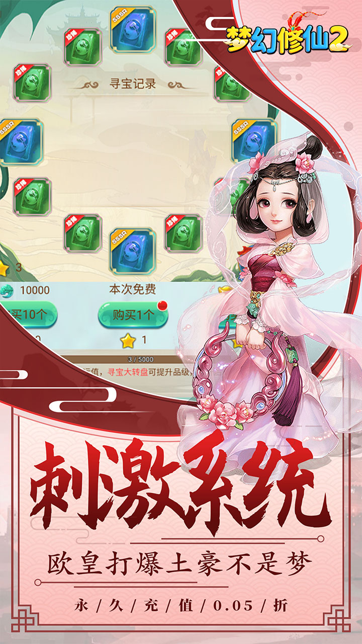 《梦幻修仙2(0.05折送绝版伙伴)》是一款Q版回合制游戏。创角即送神级红品伙伴、仙玉*8888、元宝*1000000、银两*1亿!累计登录还有绝版伙伴等你拿!精美2DQ版人物设计,搭配西游故事剧情,实力打造精品回合制经典!酷炫坐骑共同遨游天宫,独有万千道具自由回收,多样经典回合玩法无穷乐趣!