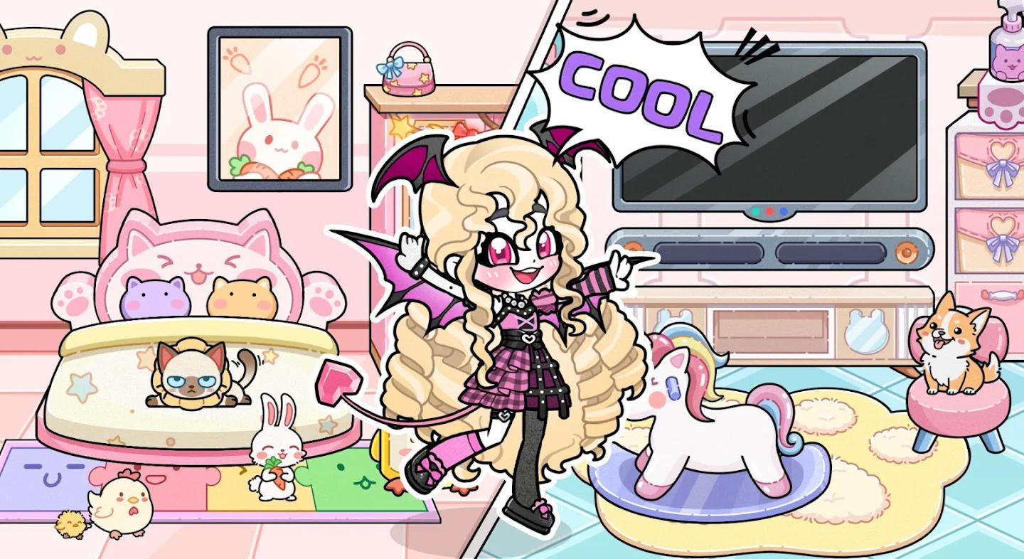 房间装饰完毕!但是缺什么吗?让娃娃住下来吧!时尚偶像需要时尚的家,公主需要皇家的城堡,酷女孩需要暗黑哥特风格的房间…把各个娃娃摆放在自己喜欢的房间里!再添加一些可爱的宠物,让房间更有活力!
