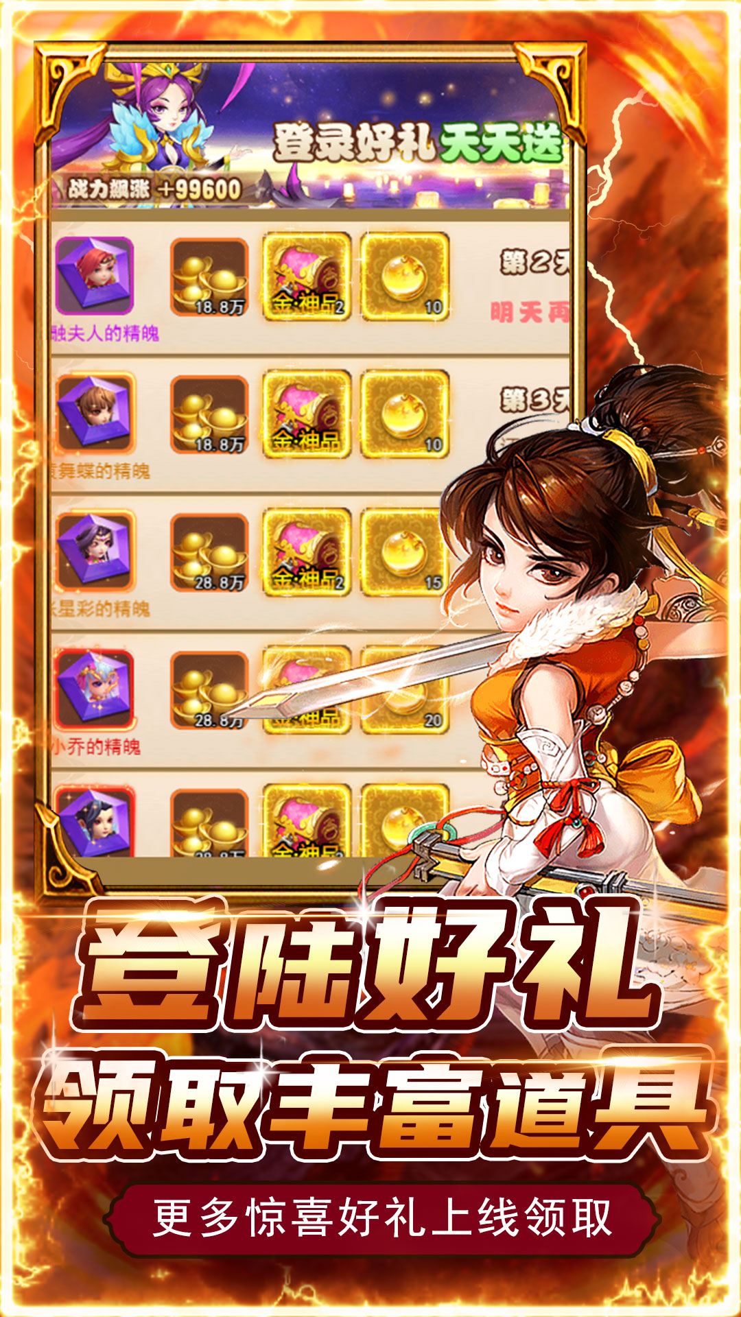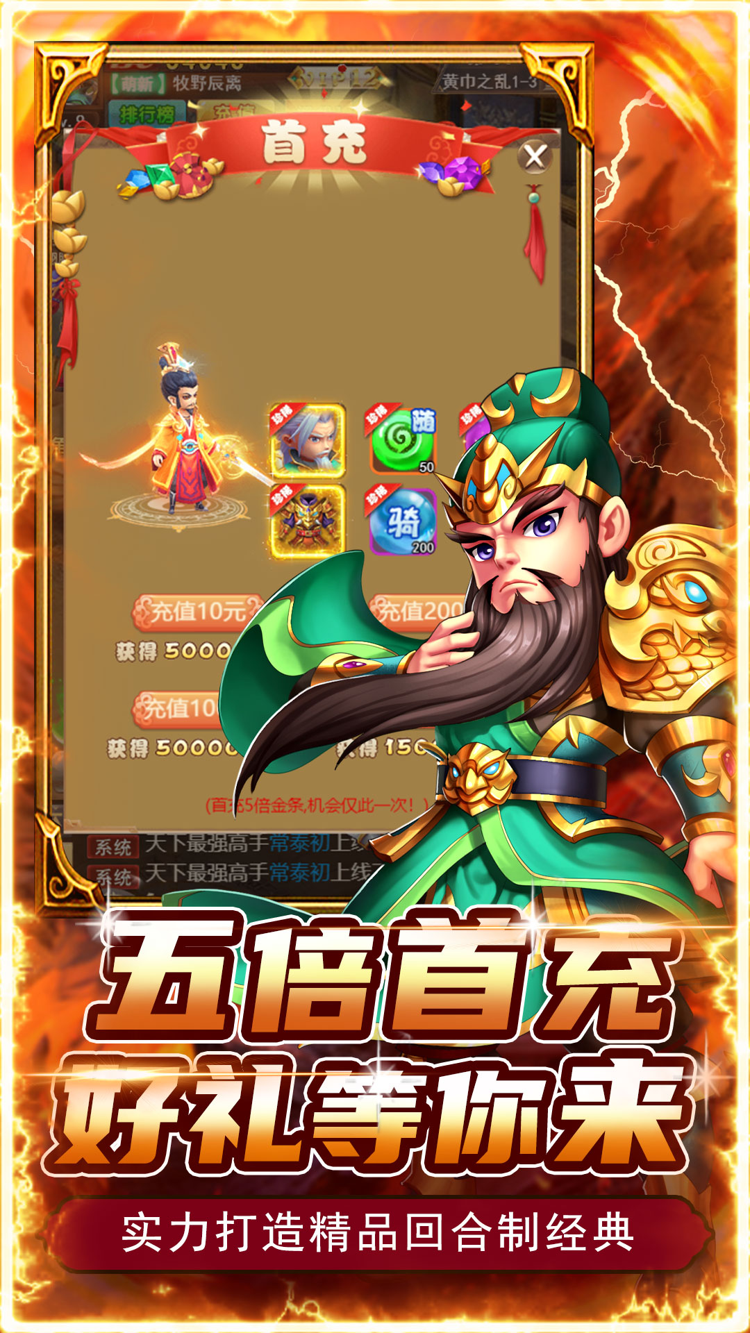 1.上线即可领取svip15,VIP礼包免费领,更有直充卡等你来拿!2.五倍首充助力,超强武将、丹药等你来!3.三国直播领稀有皮肤!4.每日送元宝、红包、丹药等稀有豪礼!5.天天登录领超值豪礼,更有武将盲盒抽绝版武将!