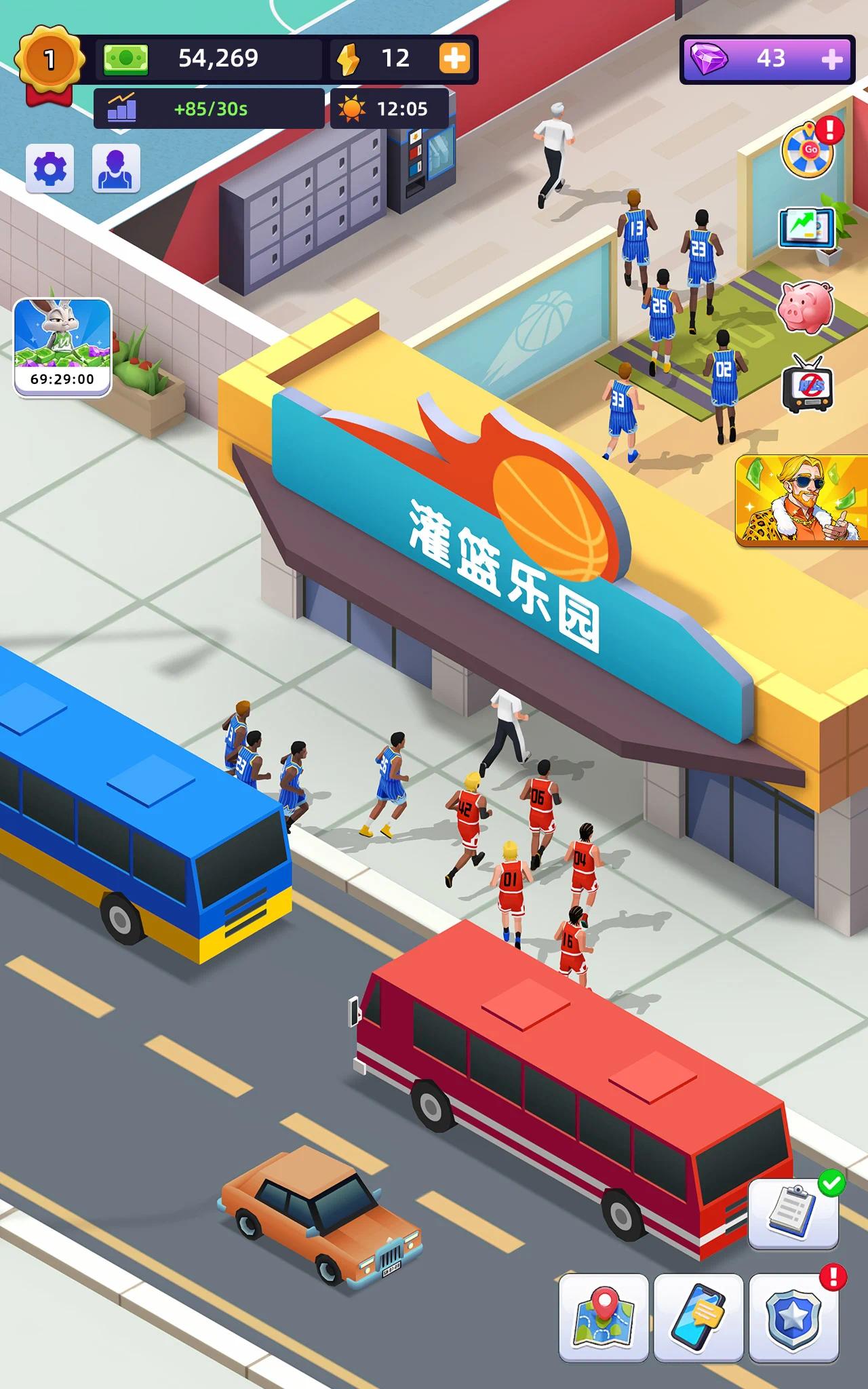 作为经理,你的任务是与知名篮球队签约并出租场地以赚取钱财。利用收入扩展和升级设施,包括建造新的房间和升级装备,吸引更多优秀的篮球队和球员来到你的训练中心。不断增长声誉,迁往篮球世界中更豪华的地点。