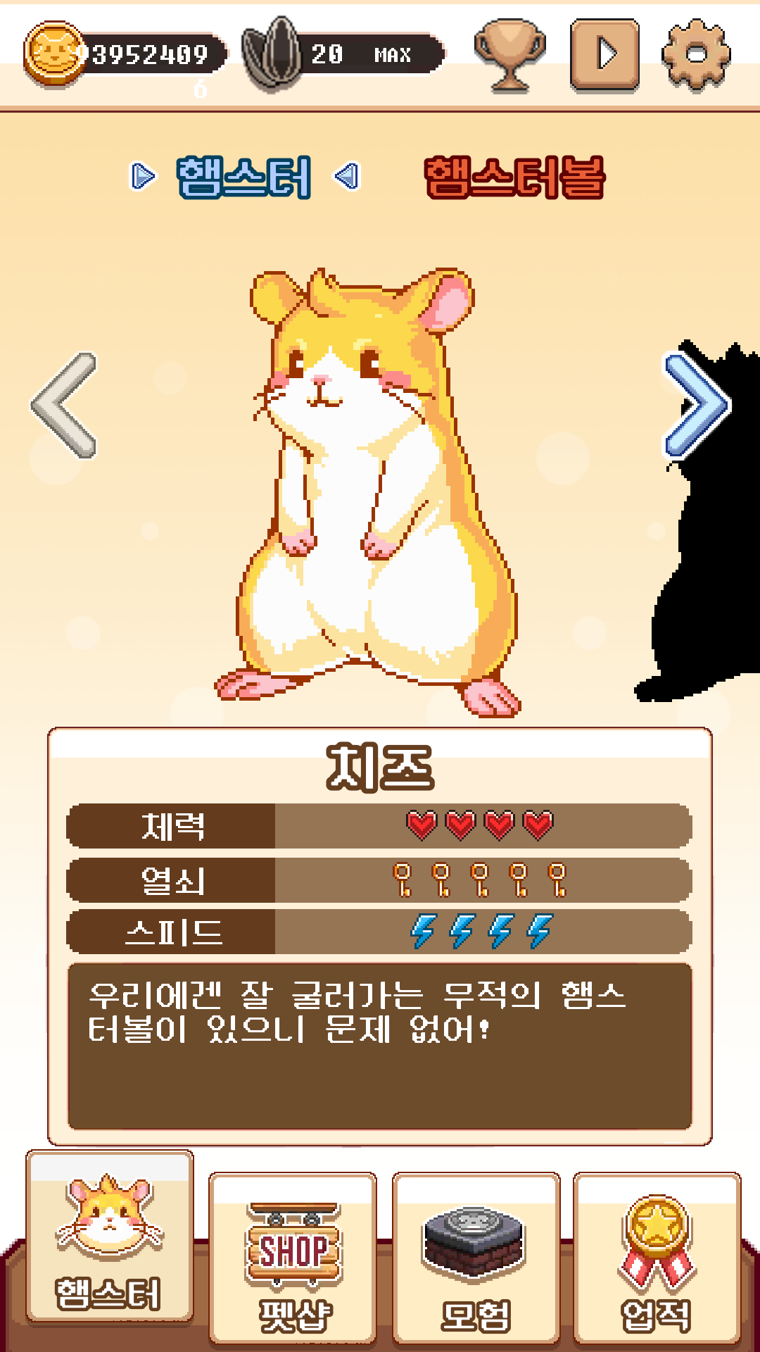 超级仓鼠球是一款相当精彩治愈的像素风冒险闯关游戏。在这款游戏中玩家们将会操控着可爱的小仓鼠带着球球进行冒险!游戏中的我仓鼠可是十分机灵的,战斗力也十分强大,不要因为它的外表而小瞧它!你想要找到各种方法来解决你在冒险途中遇到的麻烦,快来试试吧~