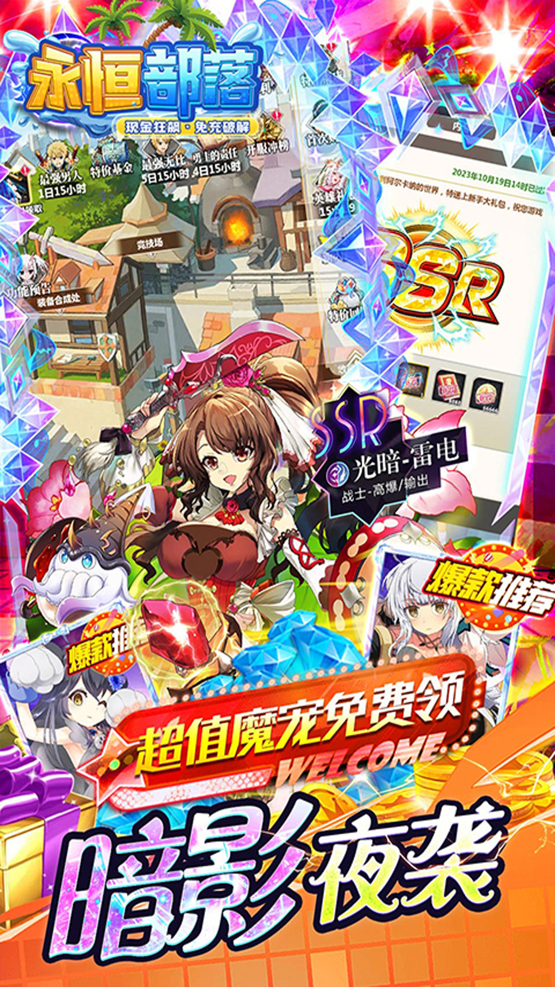 《永恒部落》是一款全新的二次元美女卡牌回合制手游,上线就送648充值卡*100、水火风光暗高资五星英雄还有满级VIP;全场充值全部0.05折,所有商品超低折扣,并且还有送代金券,可抵充值档位。还有美人公寓助你无限召唤。不肝不氪得全新二次元回合卡牌,等你来发现!赶紧加入战斗吧