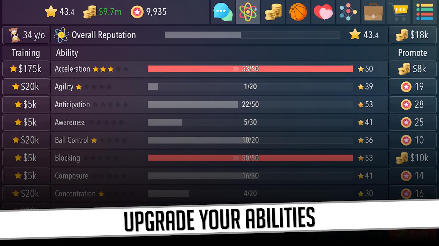 获得经验以升级适合您游戏风格的能力。也许你专注于进攻技巧,成为头号得分手,或者专注于防守职责,成为防守强者?