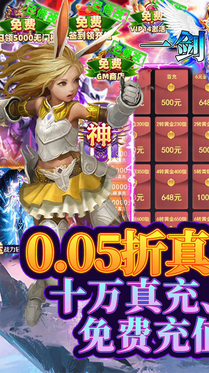 《一剑屠龙(0.05折真充代金券)》是一款魔幻风格的角色扮演挂机游戏。在游戏世界里,各位勇士可以通过完成关卡挑战快速提升等级,通过首领挑战获取各种装备提升实力,随着游戏的进行,各项新的玩法也随之解锁,这里有异界的圣兽、精灵,还有强大无比的敌人。谁能不断突破实力成为罗兰城主!谁能掌控被奉为神术的梅林之书!谁又将解救女神成为万人敬仰的神王!一剑屠龙,等你来创造奇迹!