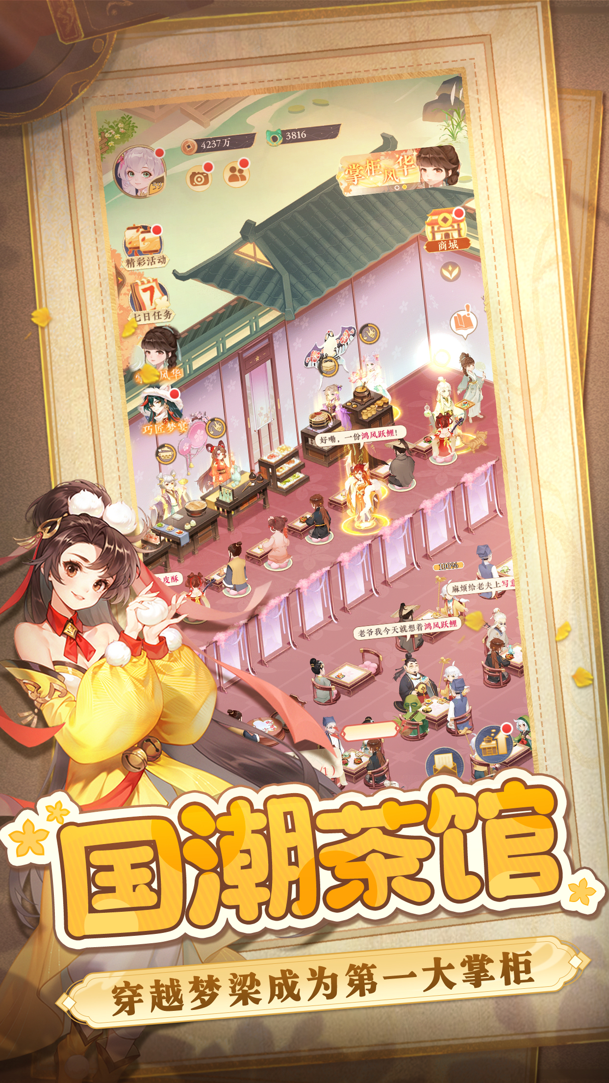 上乘国风美术打造精细人物卡牌立绘,全部都可以招进来做店员哦!倾听他们的人生故事,做江湖知己。