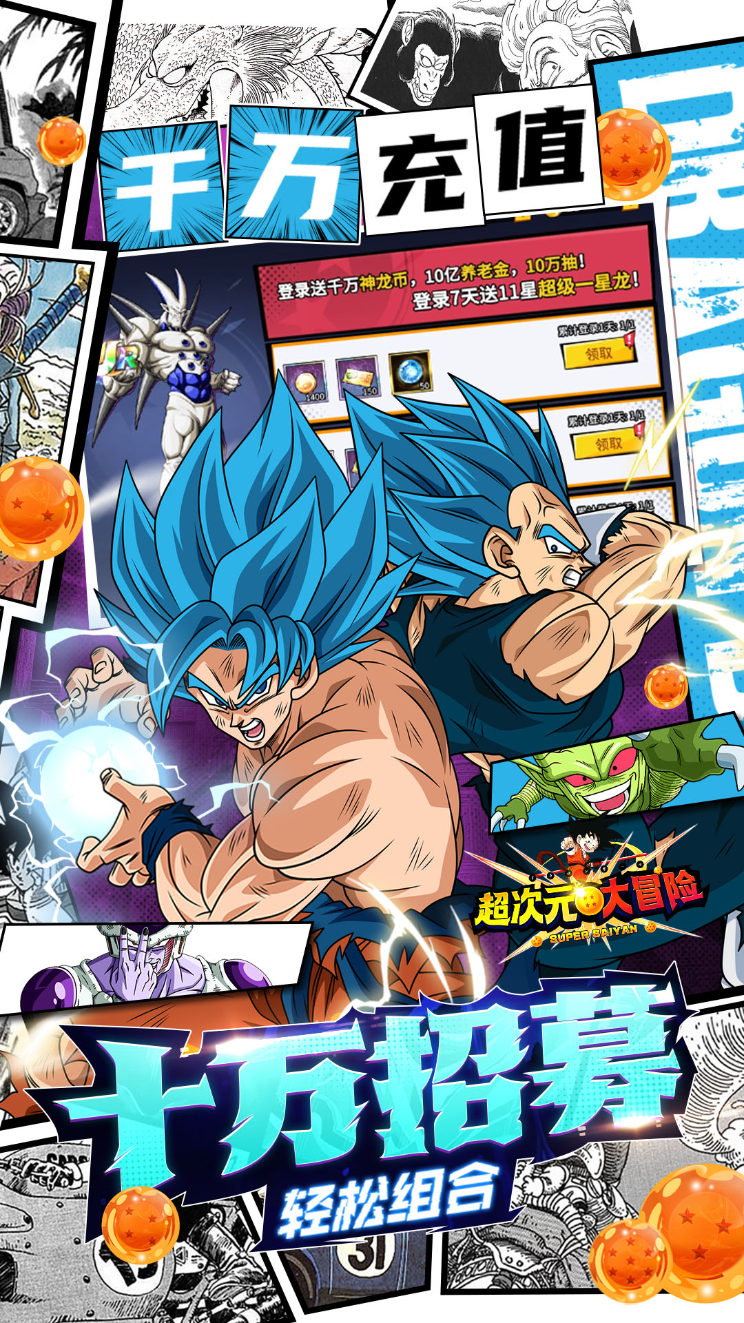 1、充值永久0.1折,648只需6.48元!BT福利版0.1来袭,金券养老全回归!2、每天在线送1000金券,每天拿资源无压力3、签到送金券,每天签到送500,每月能领15000金券爽翻天4、日常周常任务再送金券,每日500再加每周1500,超长续航不停歇5、养老院惊喜回归,养老商城出售道具“数量”全面上调,价格不变!共计送出超4万现金券,加量不加价!6、独创超级加倍,最高百倍产出!轻松畅玩0.17、上线送8级Z战士,648金券、顶级LR布罗利超4、百连抽、超赛材料包8、登录送千万
