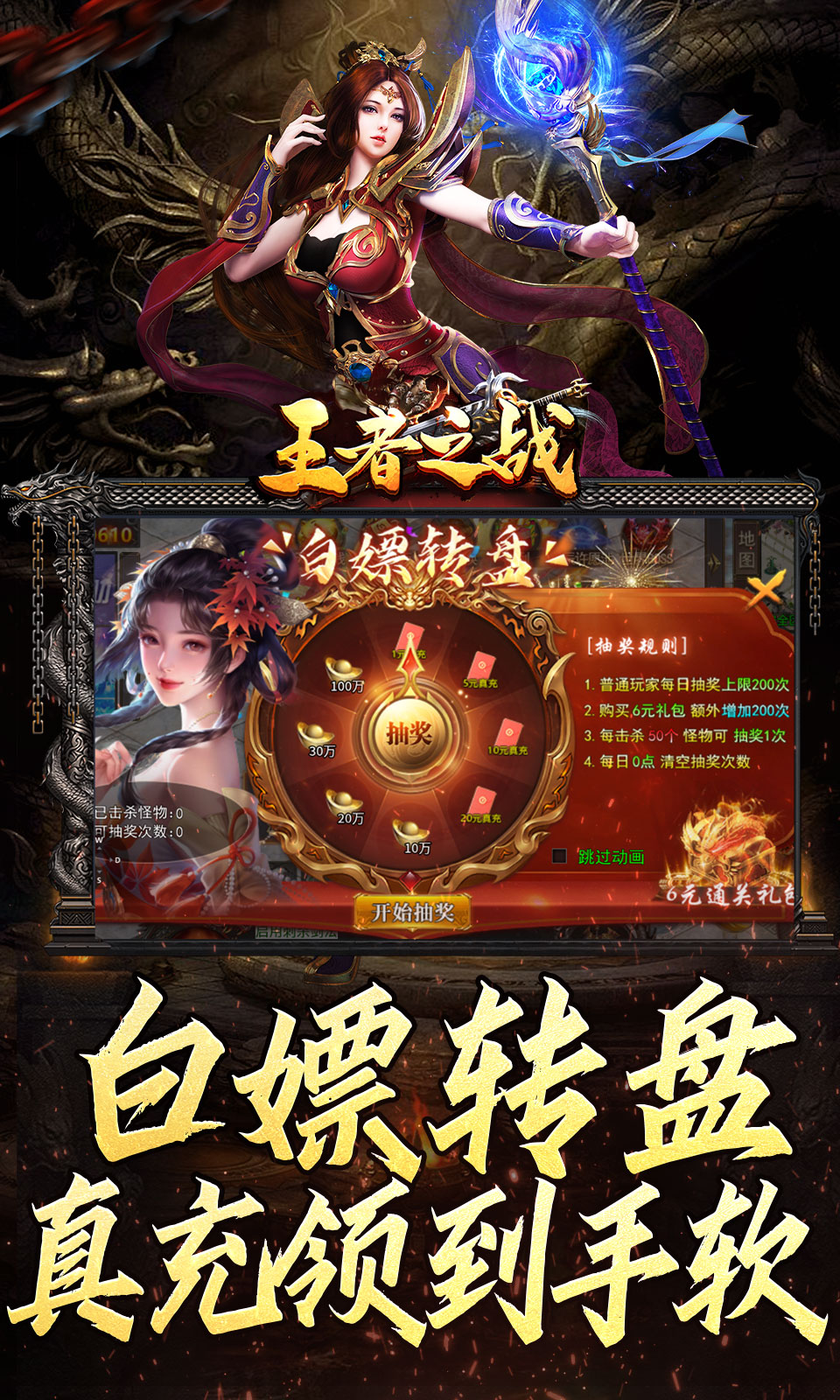 白嫖活动升级,无限可能! 杀怪即可领取直购点,无上限设置,意味着无限杀怪就能无限领取奖励,真正的白嫖天堂,让游戏乐趣与收益并行不悖。立即踏入《王者之战》的奇幻世界,享受前所未有的游戏体验,开启你的王者征途!