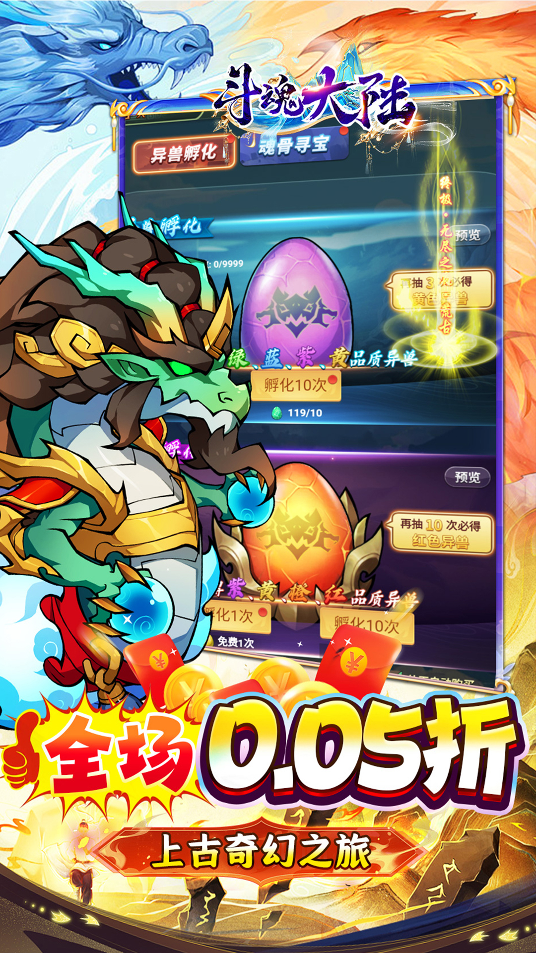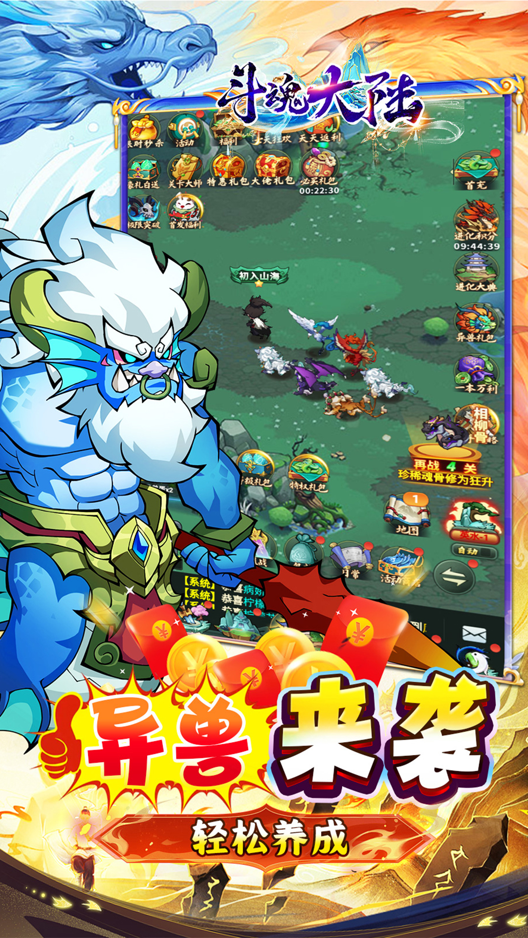 《斗魂大陆》是一款有趣的休闲养成类游戏,在游戏中您可获得众多异兽伙伴,自由搭配伙伴组成阵容,多等级异兽协助作战,进化你的最强异兽,去挑战游戏中的各类玩法,去探索更广阔的山海世界。