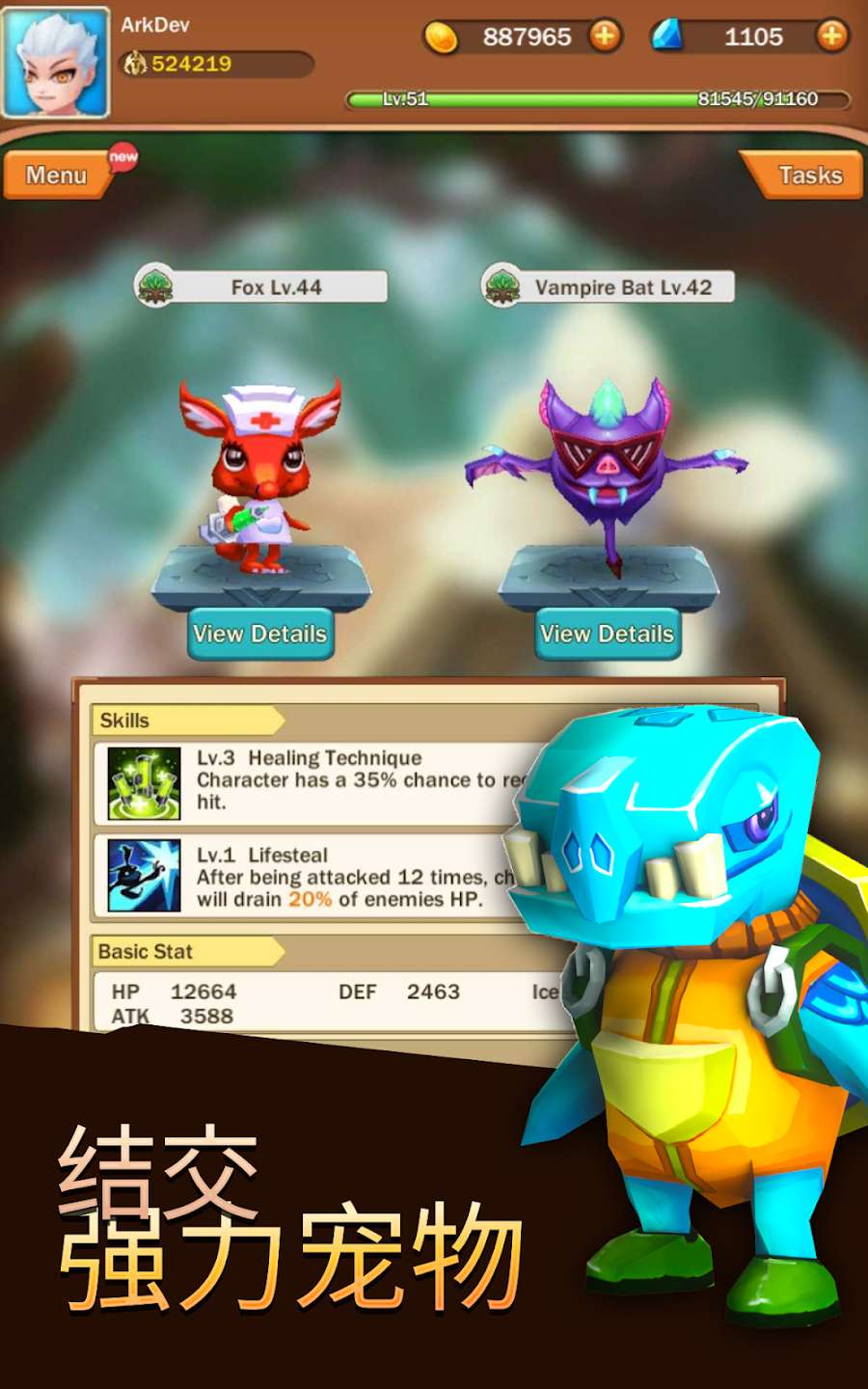 宠物带有独特技能和属性加成,实时帮助你战斗。