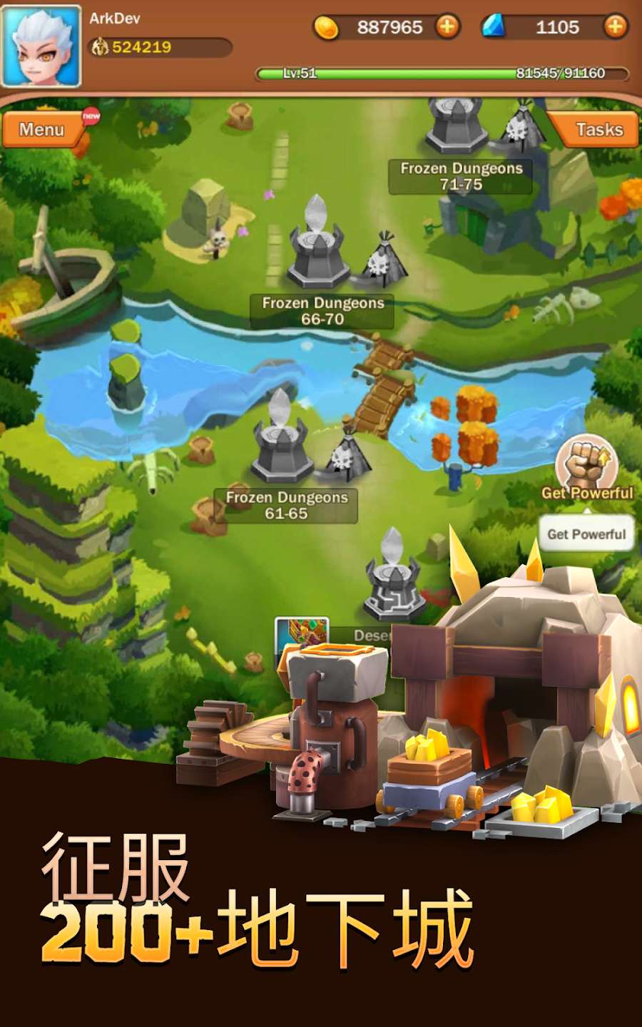 使用自动战斗和挂机系统,在移动中协助你清理地牢。