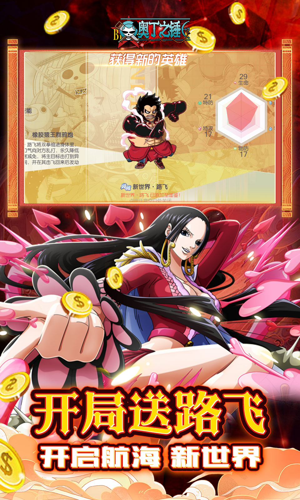 全新0.1折免费版本,所有充值永久首续真实0.1折!更多经典海贼角色为你保驾护航,点燃你的经典情怀,重启航海远征之旅!