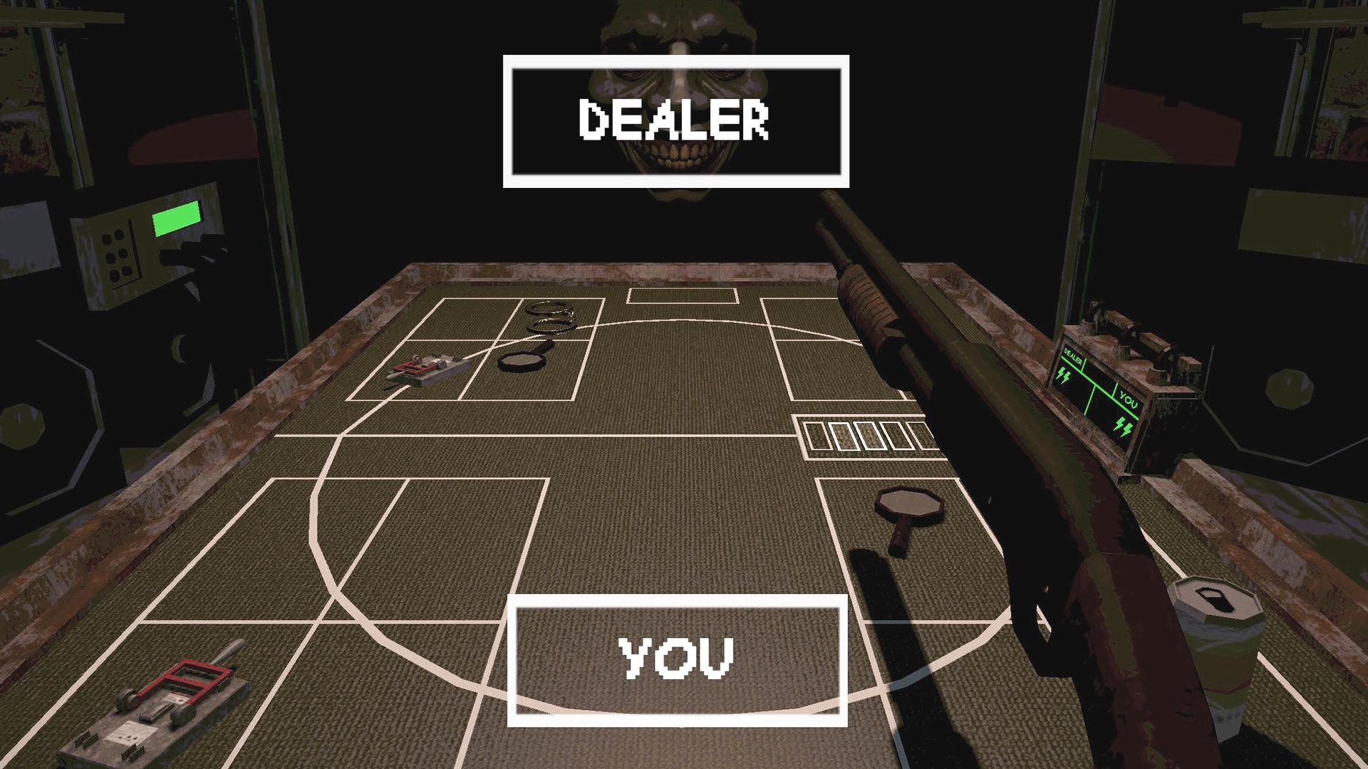 游戏开始时,庄家会为霰弹枪装上随机数量的子弹,并展示给你看。然后你们将轮流互相射击,直到有人生命耗尽。