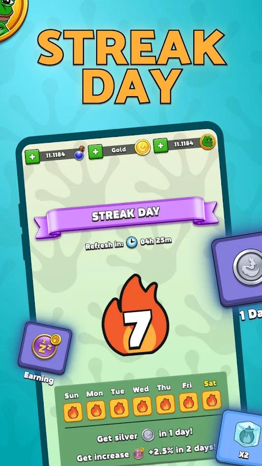合并并解锁一系列可爱而古怪的佩佩,收集所有 156 个独特角色,体验游戏中最有趣的时刻。在 Pepe's Crypto Quest 中完成每日任务和成就,赚取更多加密货币。