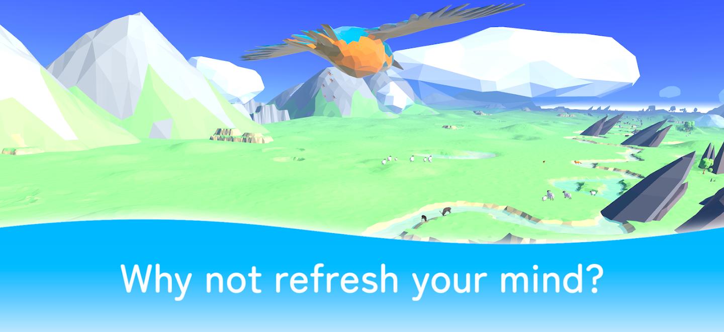 这只是一个游戏,您只需像小鸟一样轻轻地飞过郁郁葱葱的自然景观。世界上有很多精彩的游戏,像这样无聊的游戏可能很难找到。