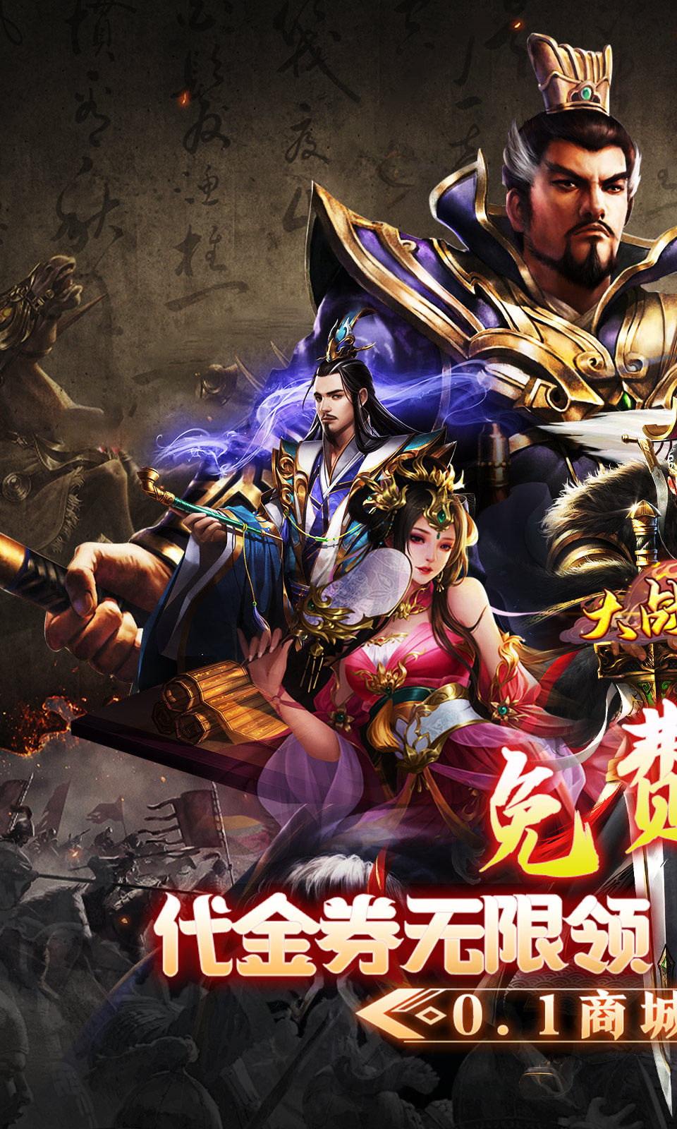 大战国全新代金券免费版来袭,背包每日免费领取代金券,想买什么就买什么,上线直送无双将自选礼包,开局即巅峰,每日签到领取百连抽,豪华阵容不是梦,全员5星神将!东汉末年,烽火狼烟,天下三分,三国鼎立,群雄逐鹿,攻城略地,三国大战,一触即发,在这个充满热血与激情的世界,你可以坐拥百名文臣武将群雄,轻松称霸三国!