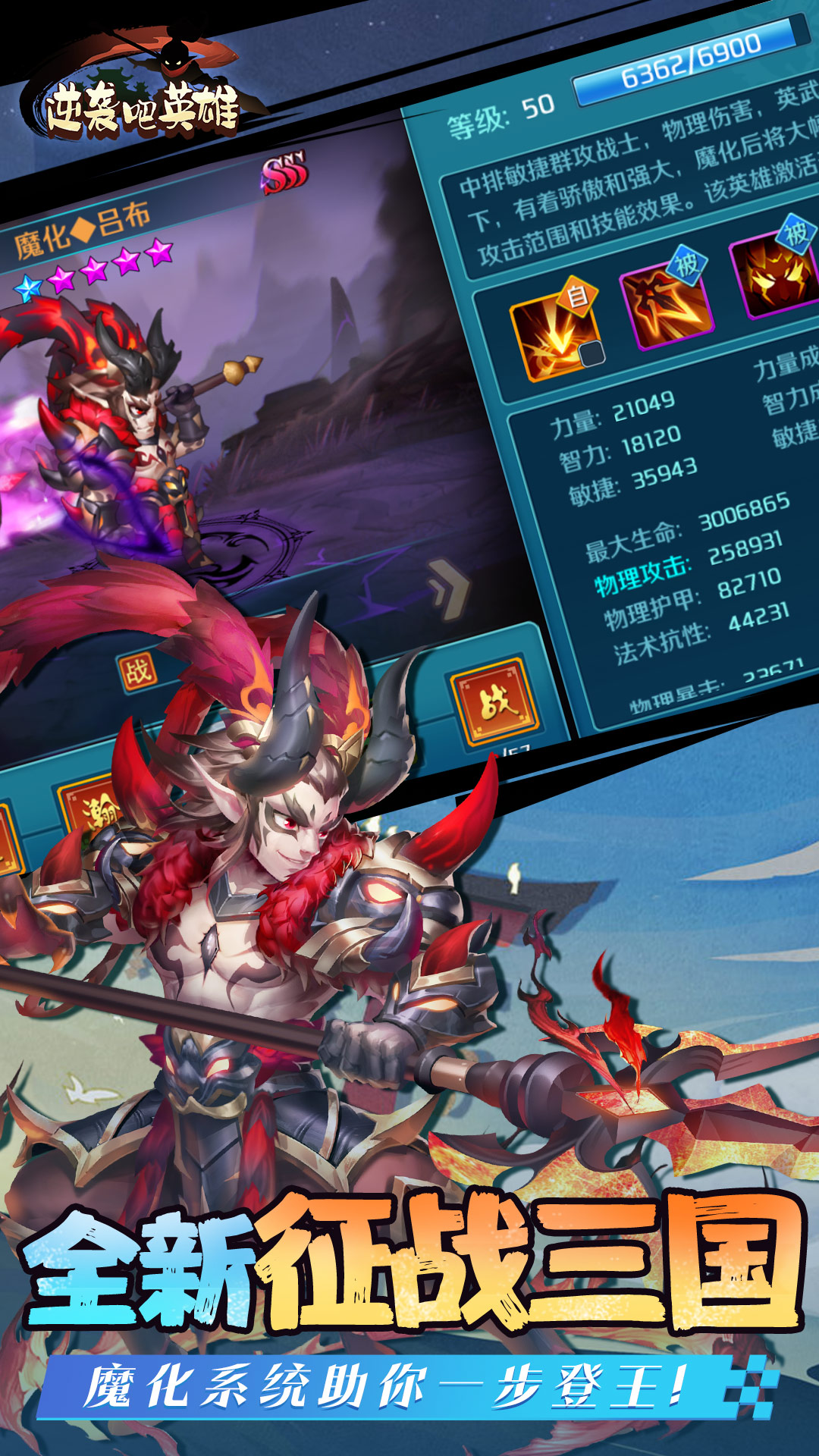 打破卡牌回合游戏禁锢,微操战斗,自由走位、打断技能,以谋略定胜负!以武力定江山!三国名将轻松收集,自由搭配,打造超强阵容;再现百城十三州三国大地图,卡牌游戏也能国战,随时随地攻城略地;兄弟知己、封土建邦,让你亲身体验乱世豪迈,定鼎中原。