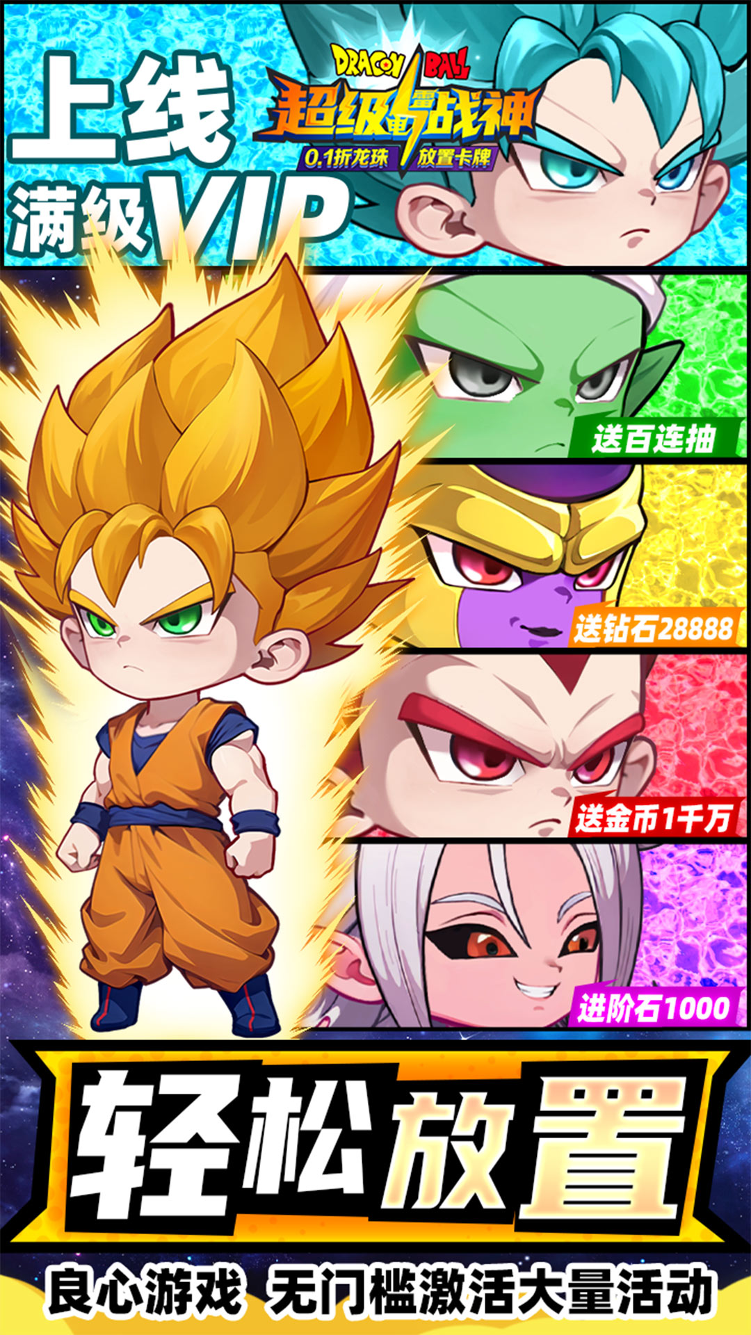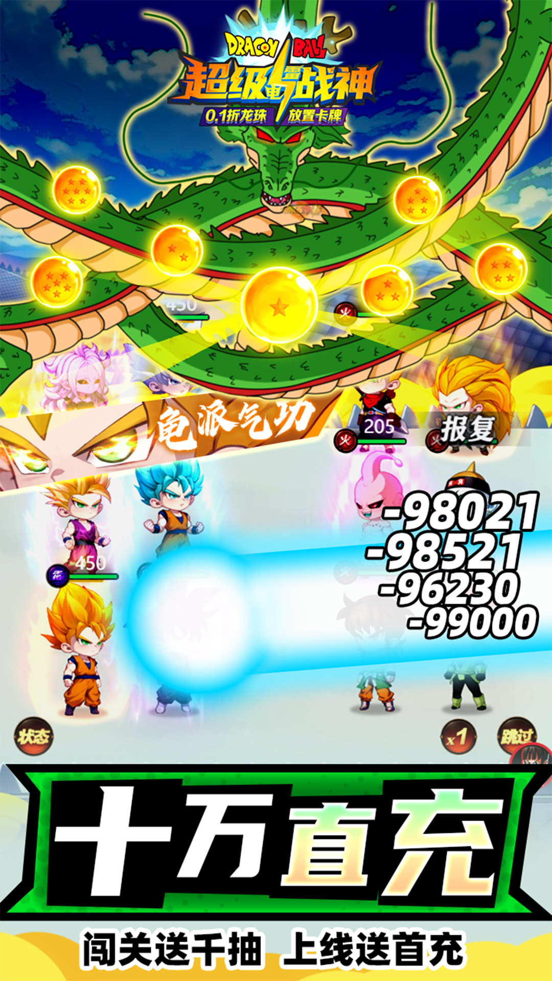 《超级雷电战神》是一款龙珠题材的卡牌放置游戏,拥有近百位真实龙珠战士,拳拳到肉决战武道大会,孙悟空、贝吉塔、弗利萨等原著中所有经典角色,神龙许愿、天下第一武道会等龙珠特色玩法;热血复现龙珠战斗场景,险境重生突破战力极限!