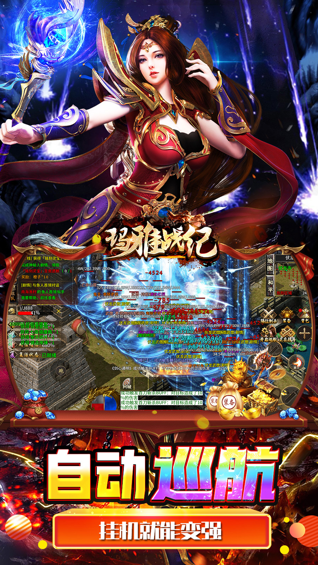 《玛雅战纪》是一款全新开荒打金传奇游戏,沿用最经典的玩法画面,复古的人物模型和武器装备,带你回味不一样的传奇世界。技能酷炫,超高爆率,独家道具掉落光柱,让你一次爆到爽。超多福利活动,你还在犹豫什么,这么好的福利赶紧上线一起血战龙城,大闹传奇世界。