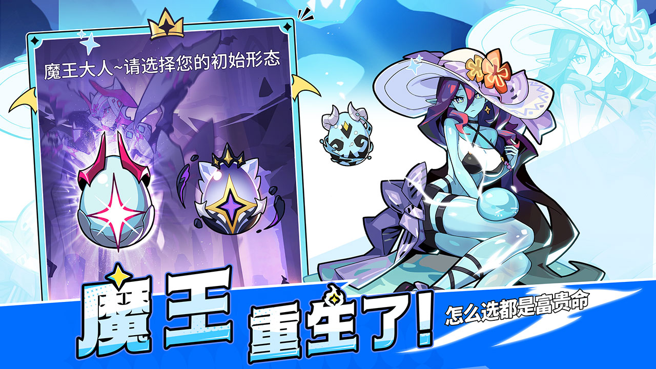 在你甦醒之后,魔物们都期待着再次归顺于你的领导!收集散落的魔蛋并孵化,你将获得一只随机属性的魔物,而稀有的闪亮变异魔物只有幸运魔王才有机会获得!