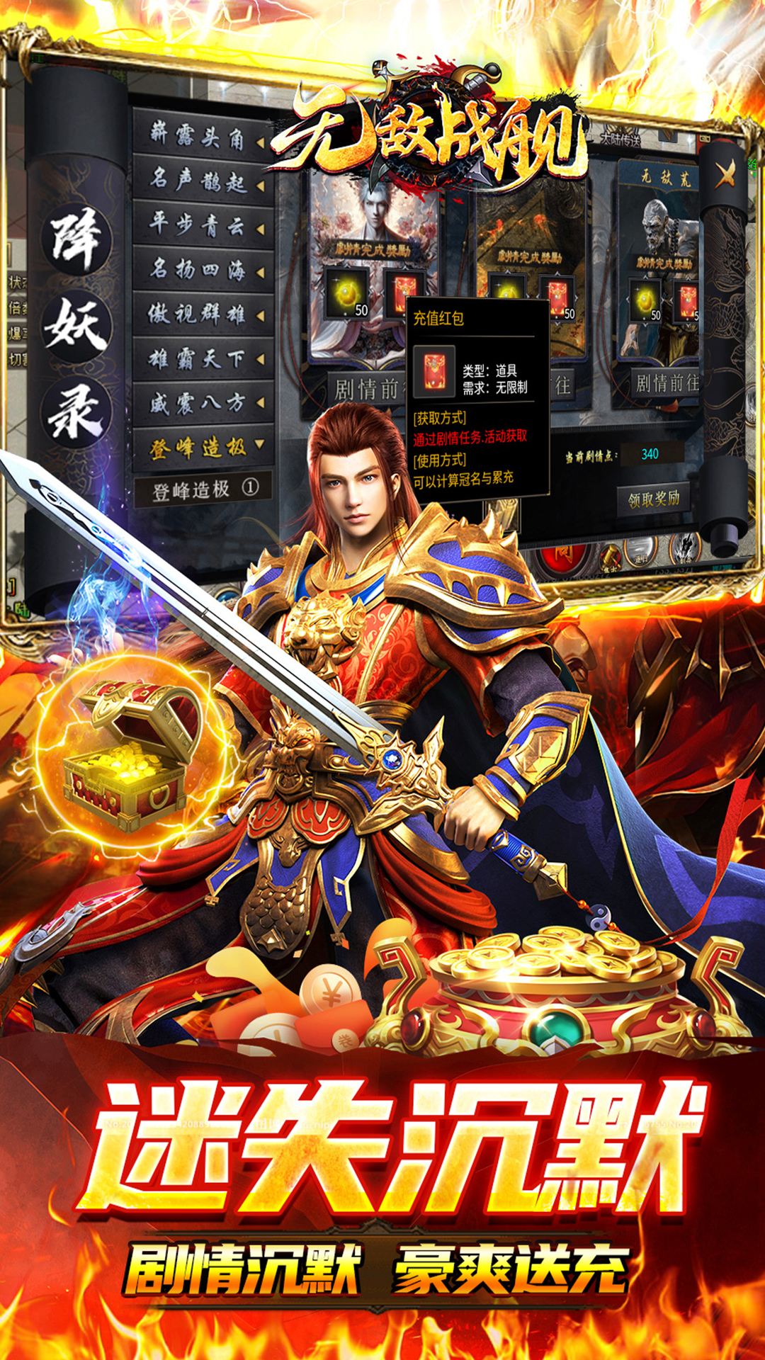《无敌战舰(高爆专属沉默)》是一款全新高爆沉默专属剧情版本传奇!剧情奖励高额真实充值,激活冠名和累充!上线送自动回收、自动拾取、黄金会员等多重豪礼,满级会员也可以白嫖!货币通兑,散人玩家的逐梦天堂!不卡大陆,每个大陆富含独有特色玩法,简单耐玩!打怪刀刀切割,攻速快,爆率高,专属装备保值,打到就是赚到,只要花点时间,人人当大佬,良心好服,邀您下载,征战传奇之路!