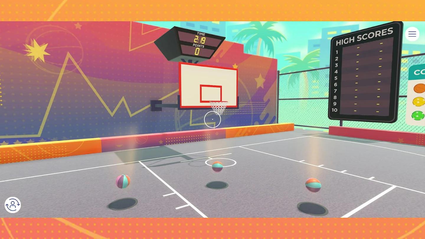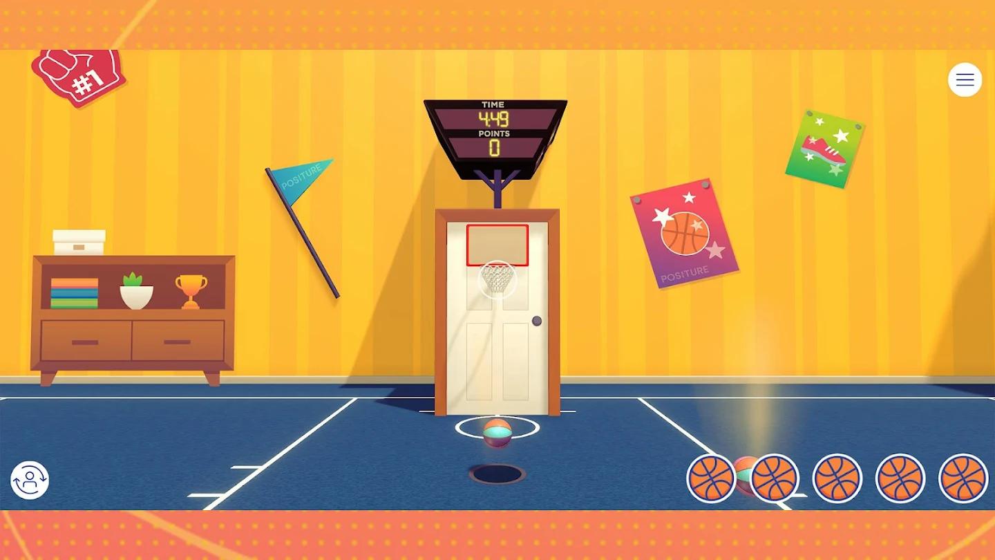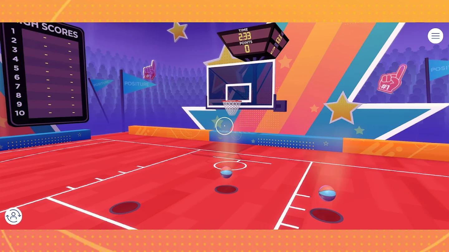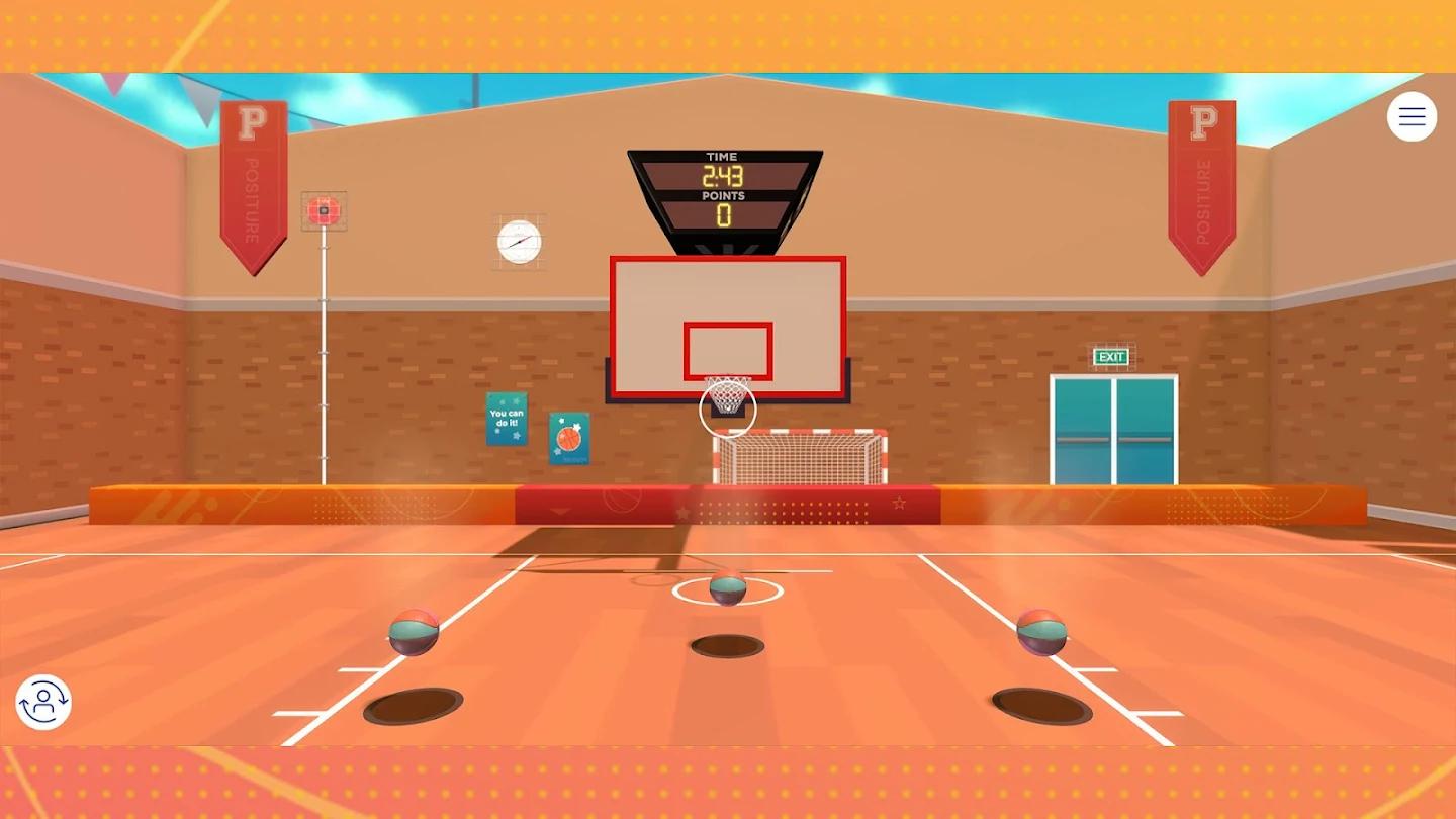 - 通过上下倾斜和移动设备来抓住、瞄准和投篮,在游戏中促进健康的姿势