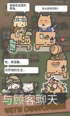 与喜欢在店里喝酒的顾客聊天,解锁独特的地块。有时,他们可能会给你留下游戏提示,并发送免费物品给你。听听他们的故事,了解更多关于杰罗城发生的事情!结识动物朋友、猫牧师、熊保安和钓鱼卡皮巴拉。