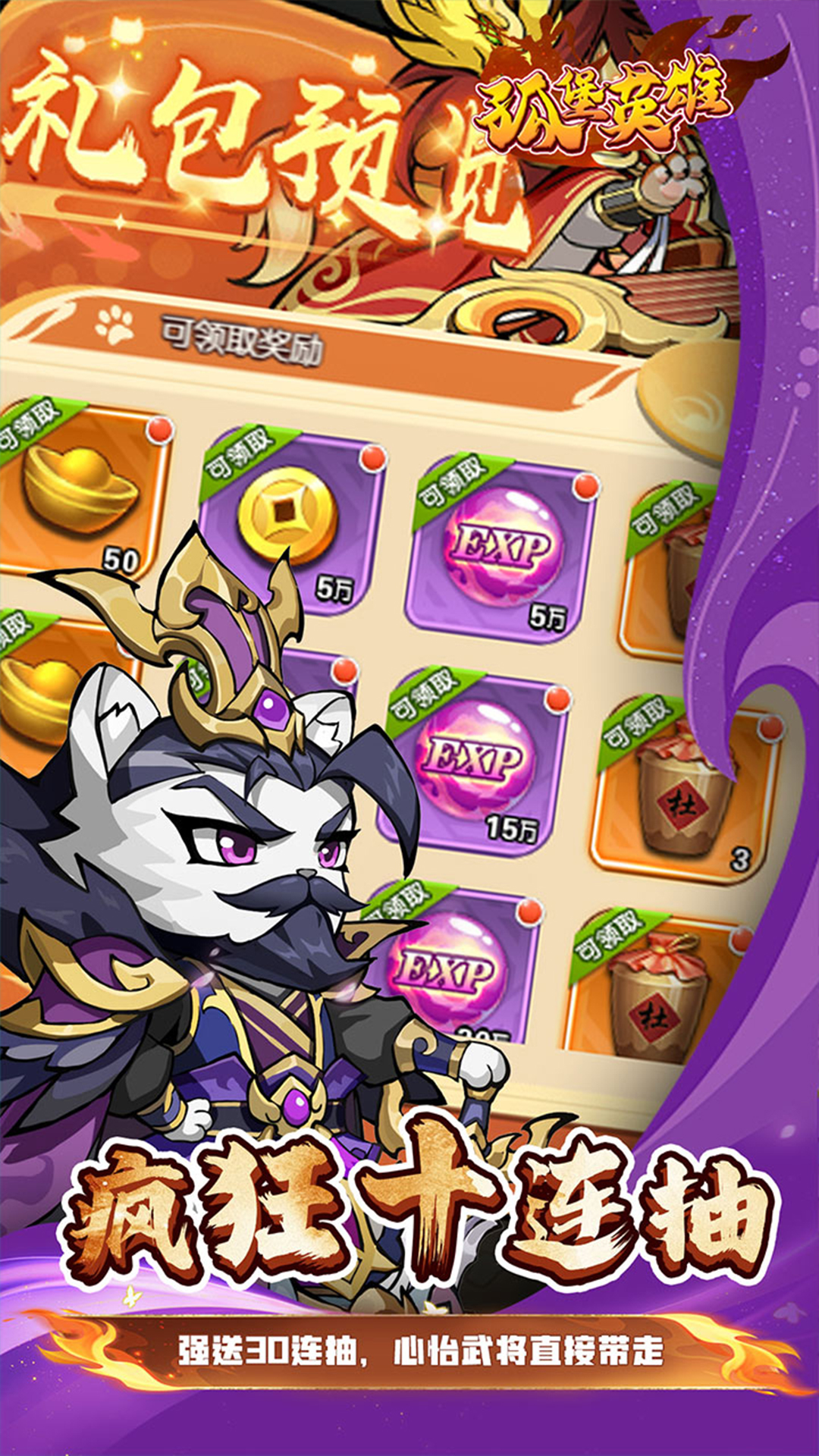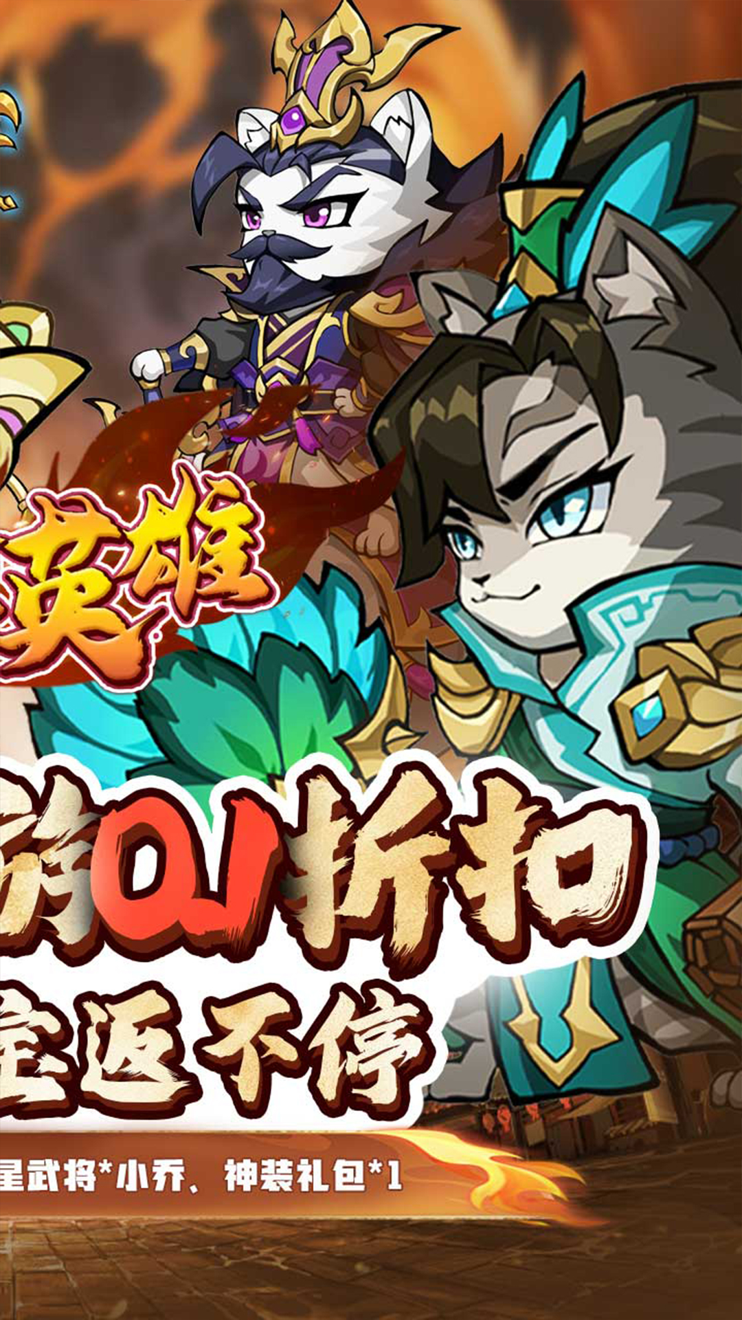 一款全新的三国放置卡牌,游戏中三国为背景题材,融合放置挂机、卡牌培养、萌宠拟人等元素,以策略布阵轻松挂机为核心,各具特色的兽化名将,丰富多彩的玩法,百变萌虎主角酷炫出战,带来不一样的三国体验!海量的福利、畅快的战斗、呆萌可爱的武将,都在游戏中等着您!