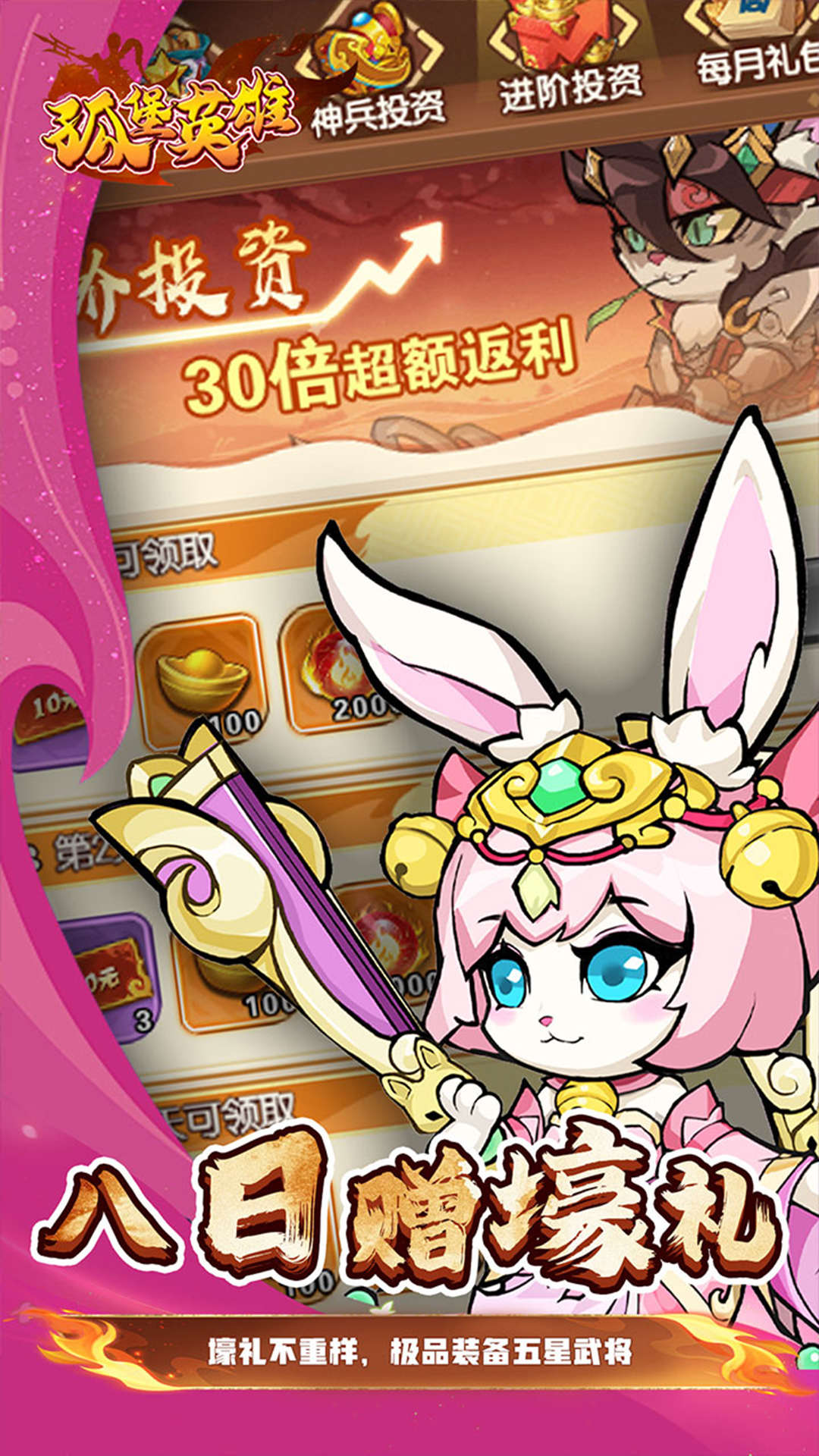 创角送满V:首次登陆即送V10、五星武将*小乔、神装礼包*1开服狂欢赠豪礼,累计登录天数免费领万抽。独特的萌宠拟人:画面Q萌精致且细节丰富多彩。酷炫的卡牌策略:策略搭配助你战胜各种强敌。丰富多彩的玩法:全新的挑战丰富的奖励领取。轻松的竖屏操作:单手也能轻松体验冒险乐趣。