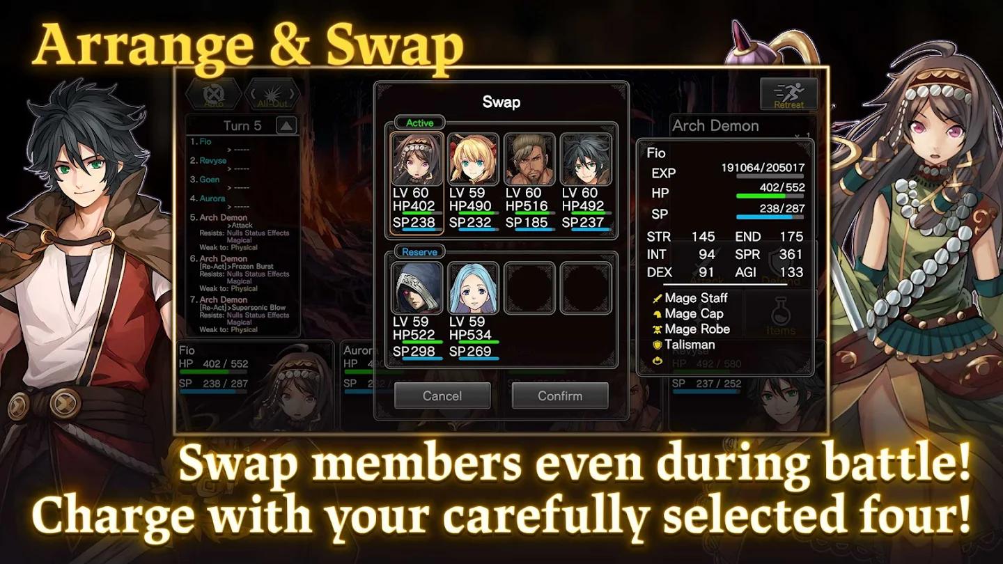 拥有独特能力和技能的最多 8 名成员,战略性地组成 4 人小队挑战地下城。