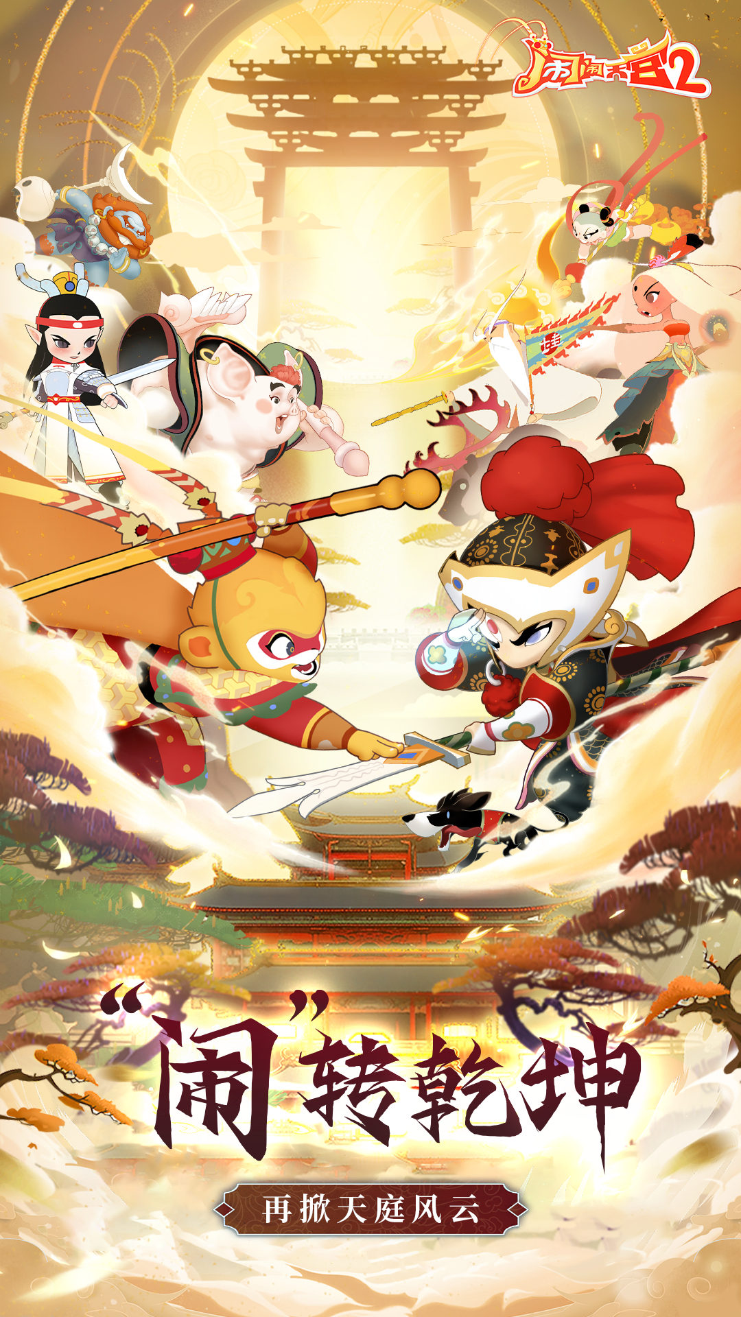 《闹闹天宫2》是一款国风放置合成塔防手游。故事背景以西游记为核心题材,还原了中国传统神话故事庞大的世界背景,并将杨戬、妲己、姜子牙等在内的知名西游及封神人物以全新的形象刻画加入到天宫冒险中,在延续《闹闹天宫》系列IP前作经典人物的基础上,以国风谱写西游新篇,以鎏金元素点缀万水千山,一改往常传统剪纸风的人物形象设定,塑造别样天宫新体验。