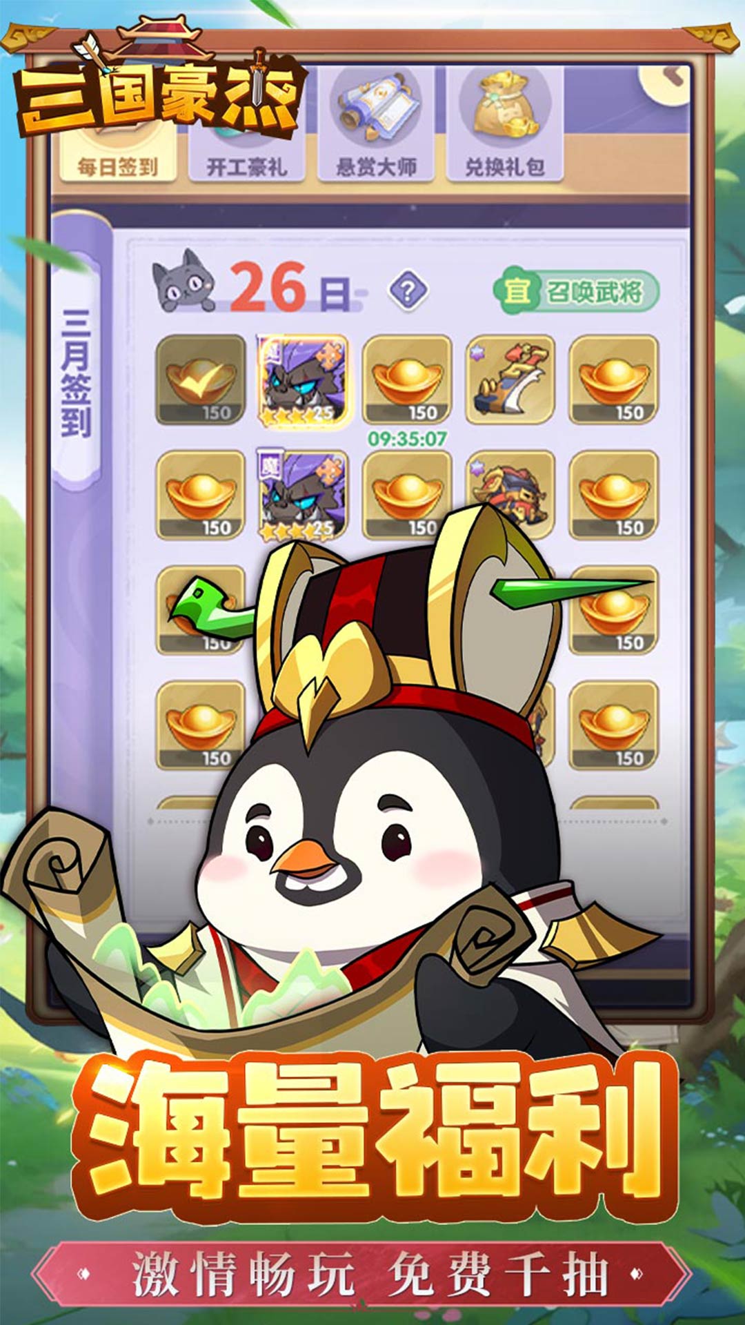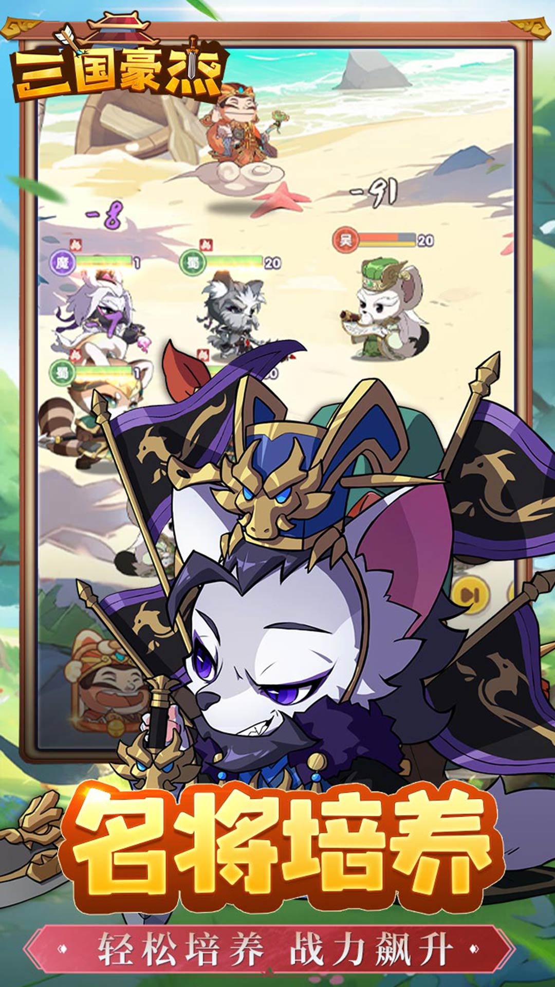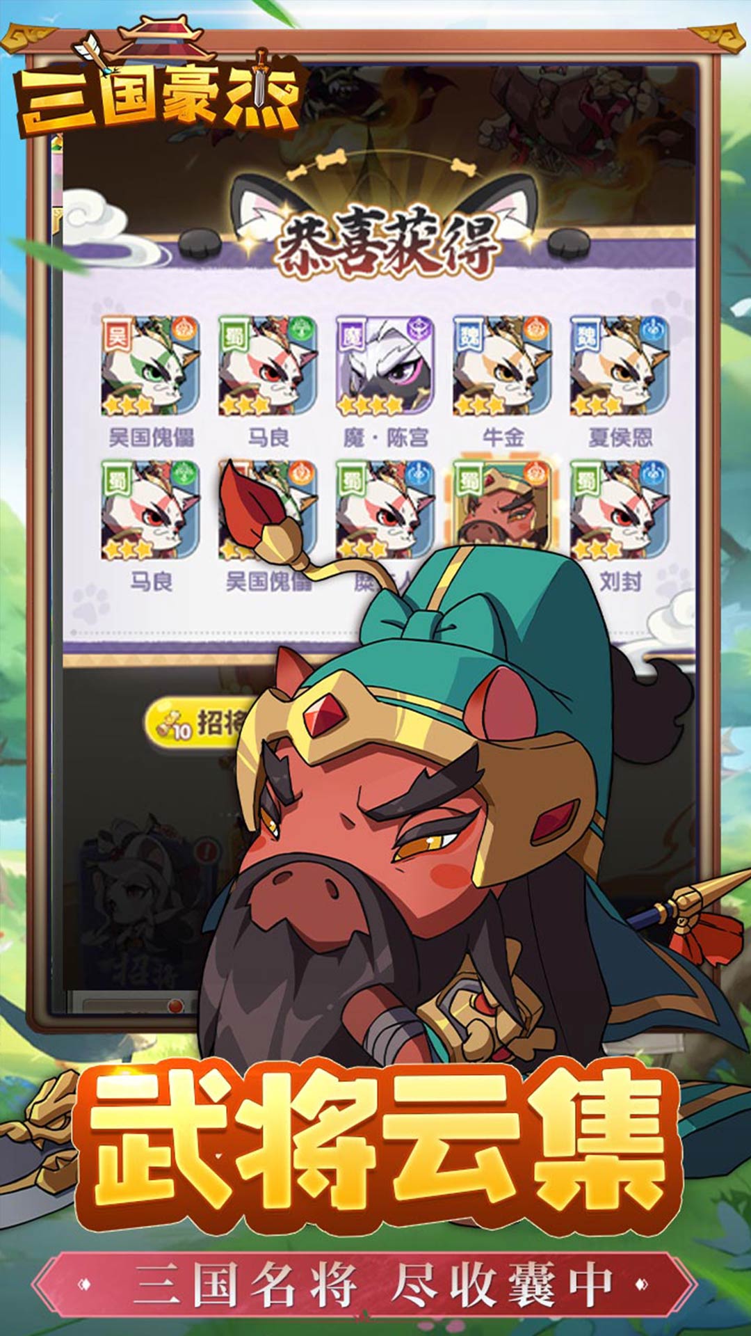 《三国豪杰》是一款三国题材的革新放置卡牌游戏。玩家将化身主公,招募组建自己的军团,割草闯关、群英联赛、巅峰决斗,感受爽快酣战!这里没有绝对的强度,每一枚金币的抉择都是战略,每一次合成都是迈向传奇的足迹!