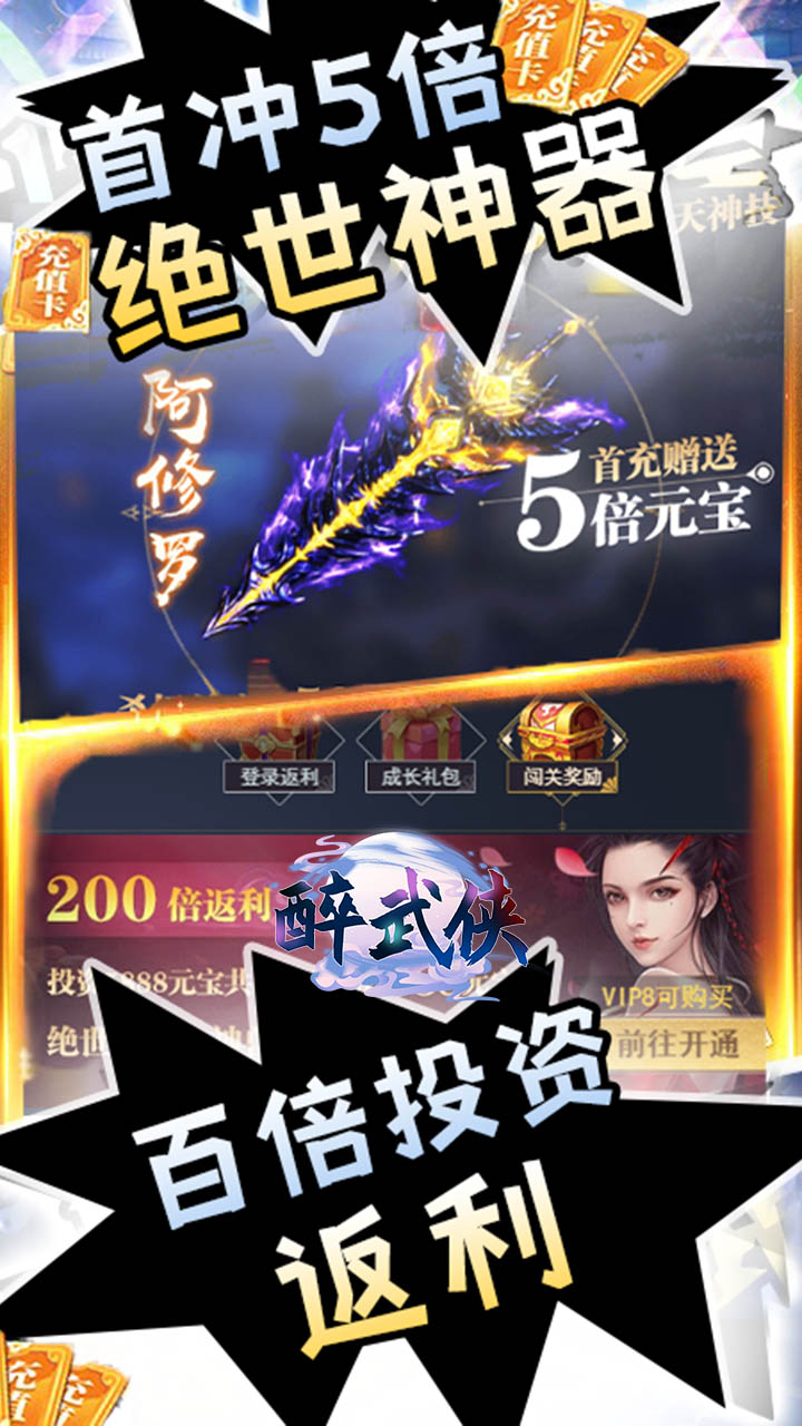 1、 全场0.05折,巨鲲吞噬升级,超爽畅快游戏体验!2、永久买断,道具每日随机领取!3. 每日秒杀 ,0元购,百倍投资返利活动应有尽有!4、直购豪礼 获取异兽大礼包!5、首冲5倍豪礼,领绝世神器!